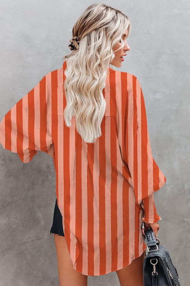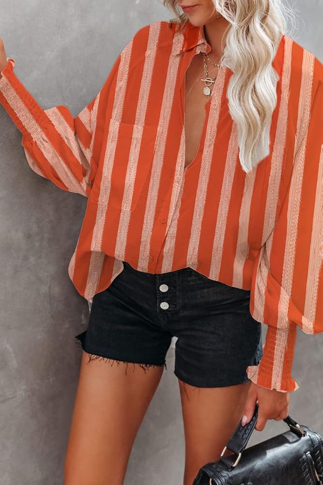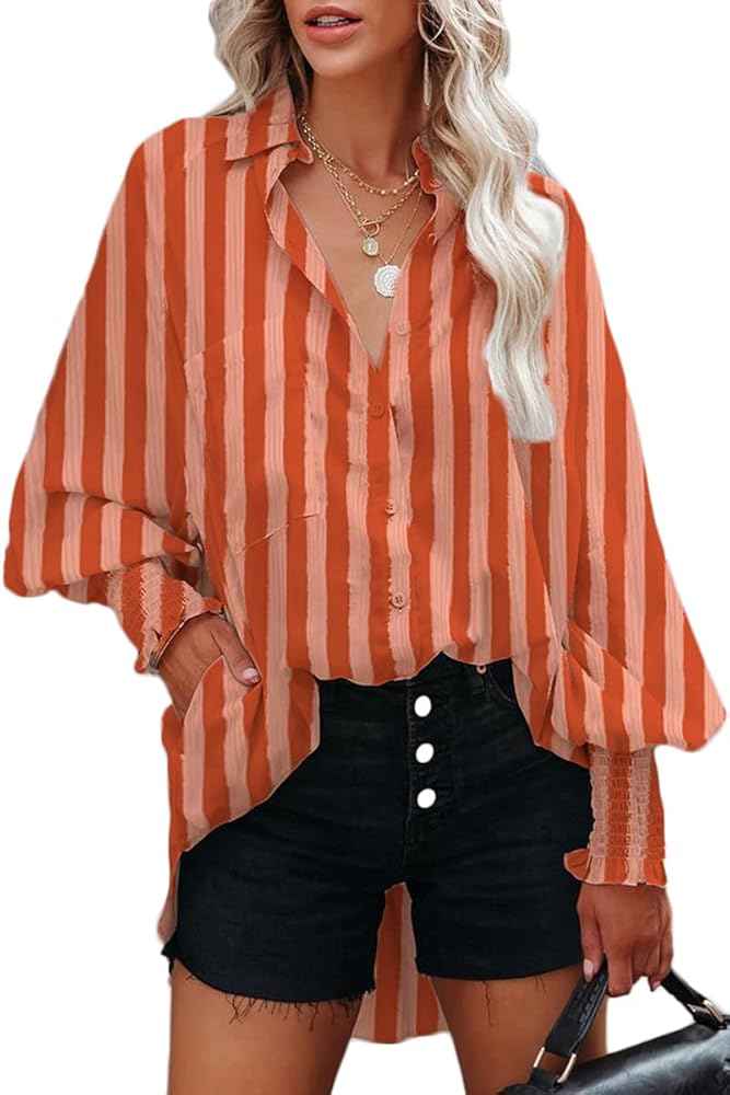 • المميزات: أزرار سفلية، جيوب أمامية، قمصان طويلة الأكمام، ياقة مطوية إلى الأسفل، رقبة مثيرة على شكل حرف V، كاجوال، فضفاض، مقاس كبير، قماش خفيف الوزن، بلوزات للنساء موضة 2022، قمصان للنساء كاجوال