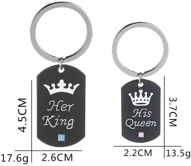 مقاس سلسلة المفاتيح الملك هو 4.69 سم × 0.94 سم، وملكته 0.98 سم × 3.37 سم، خفيفة الوزن ومتينة، ليست ضخمة على الإطلاق، جيدة كهدايا كريسماس لصديق، صديقة، هدايا خطوبة للأزواج، من يتلقى هذه الهدية سيكون سعيدًا