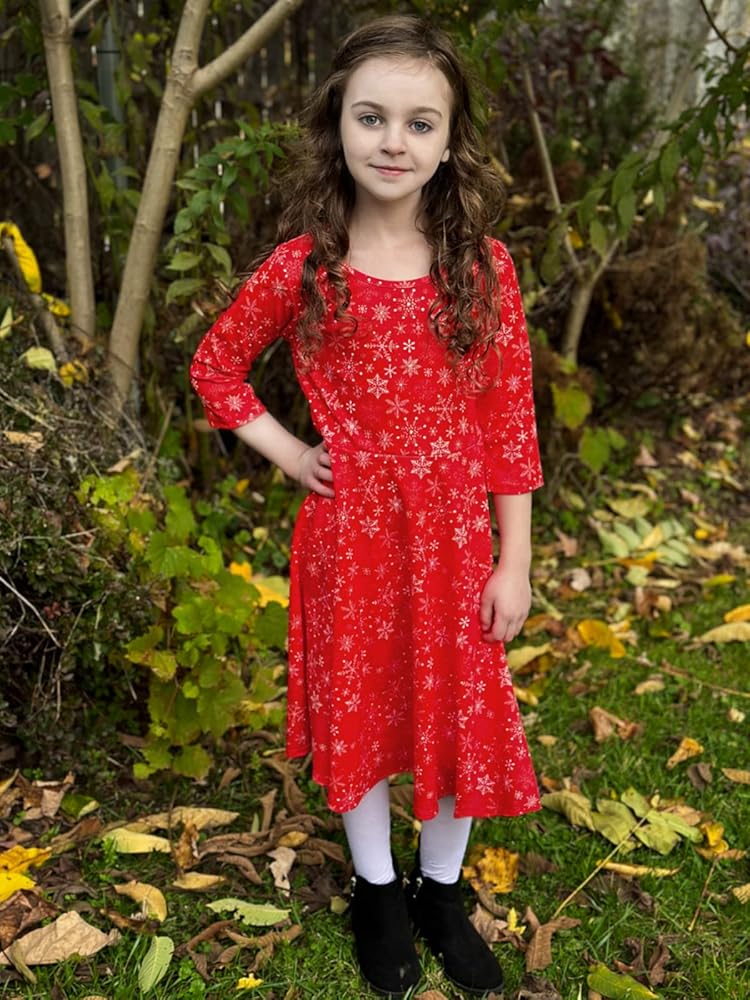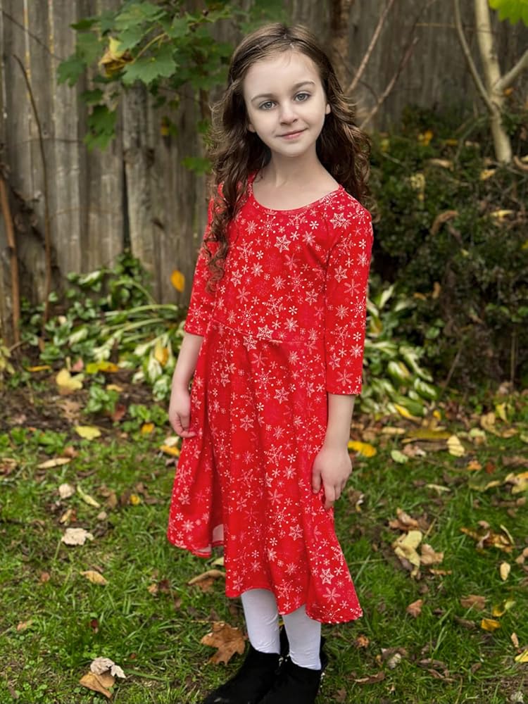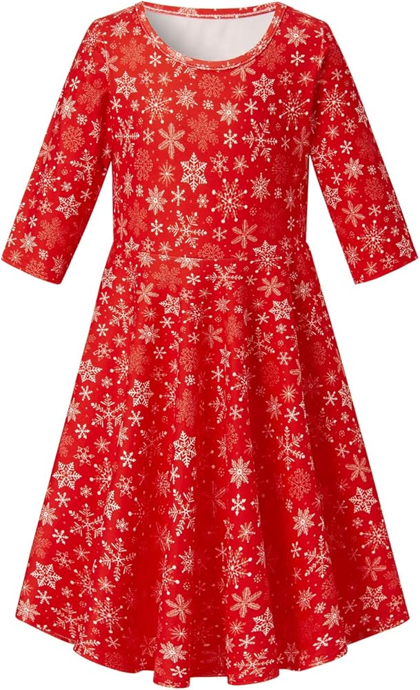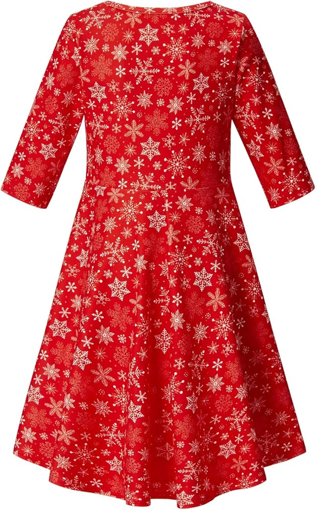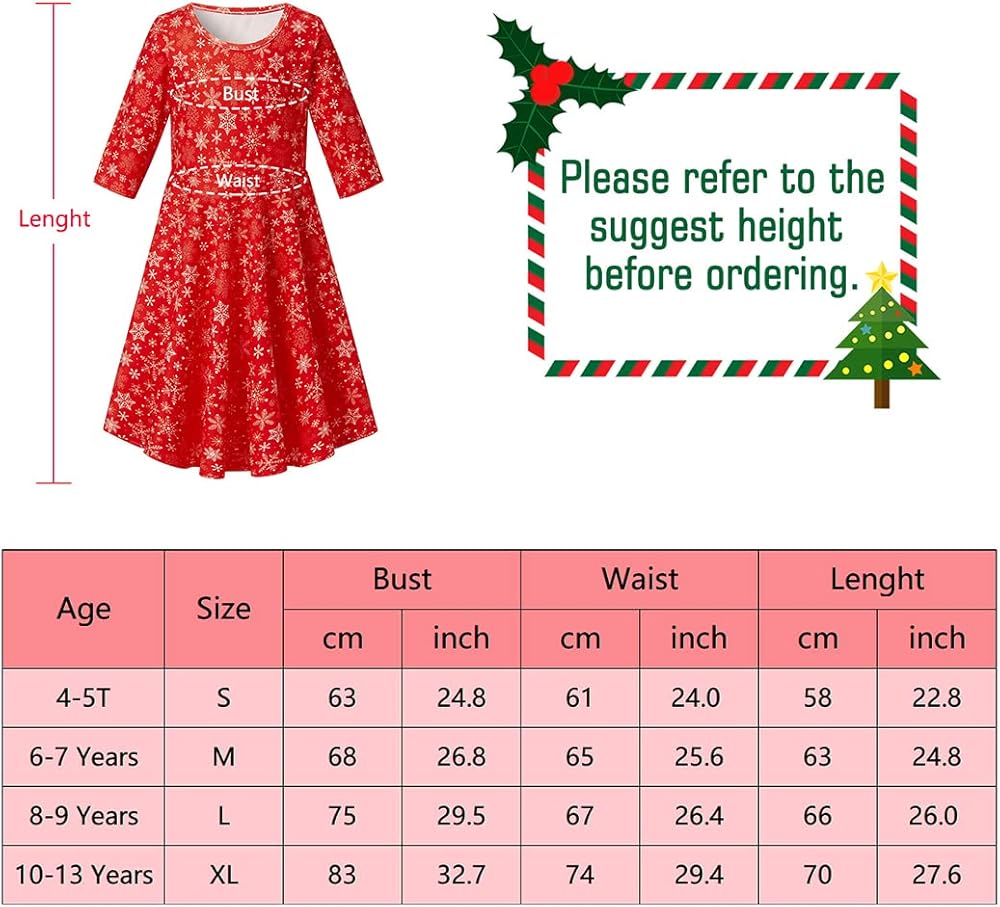 التصميم: فستان عيد الميلاد للفتيات بنمط كاجوال، يتميز بطول الركبة، وحاشية ملفوفة، مشرق ونابض بالحياة؛ يجب أن تبدو فتياتك الرائعات جذابات بين الناس
