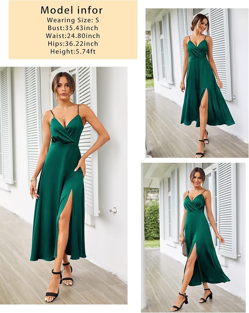 المادة: 100% بوليستر. فستان ماكسي صيفي للنساء 2023 مصنوع من قماش عالي الجودة، فستان ساتان طويل ناعم وسلس سيمنحك تجربة ارتداء ممتازة في أيام الصيف