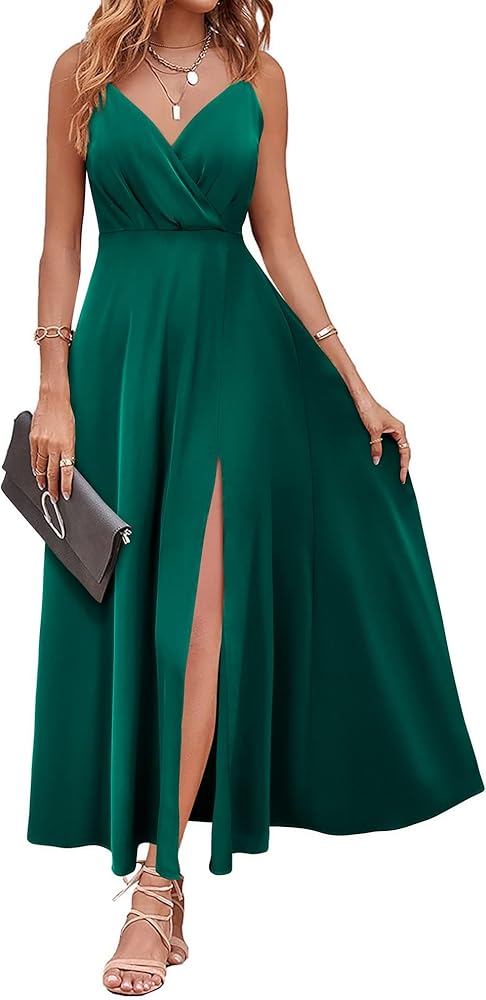 المزايا: سحاب مخفي في الخلف، فستان ملفوف برقبة على شكل حرف V، خصر عالي، فستان بحزام سباغيتي قابل للتعديل، فستان كامي، فستان صيفي خط 2023، فستان ماكسي بدون أكمام، مفتوح من الخلف وفتحة جانبية لصورة ظلية أنثوية، طراز كلاسيكي وأنيق
