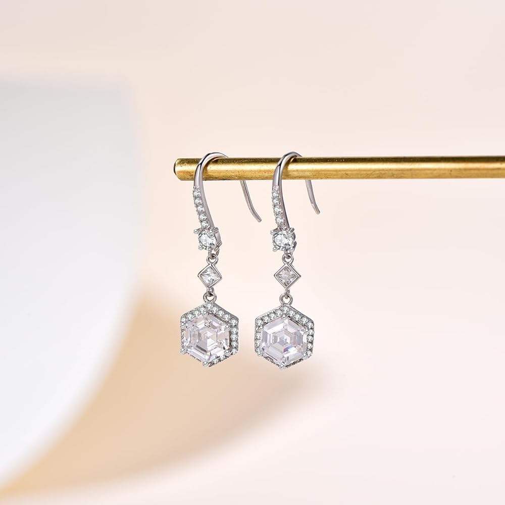 [تصميم قطرة ماء مزدوجة] تصميم قطرة ماء مزدوجة يزيد من مرونة الأقراط. هذه الأقراط المتدلية مرصعة بأحجار الزركونيا المتلألئة التي تتألق مع كل دورة.