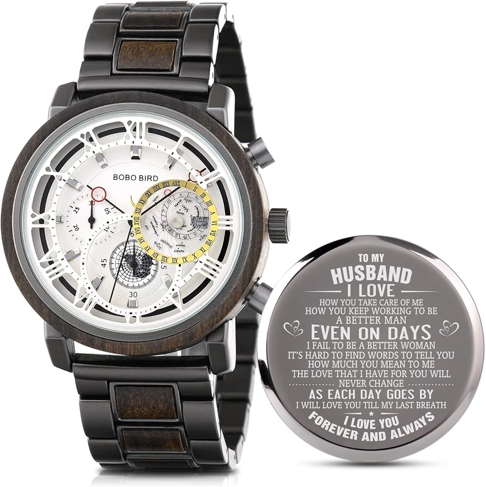 كلمات ذات معنى: كل ساعة مخصصة منقوشة بالليزر بكلمات ذات معنى "إلى زوجي". مظهر جميل وجودة عالية، يجب أن تعتز به إلى الأبد.