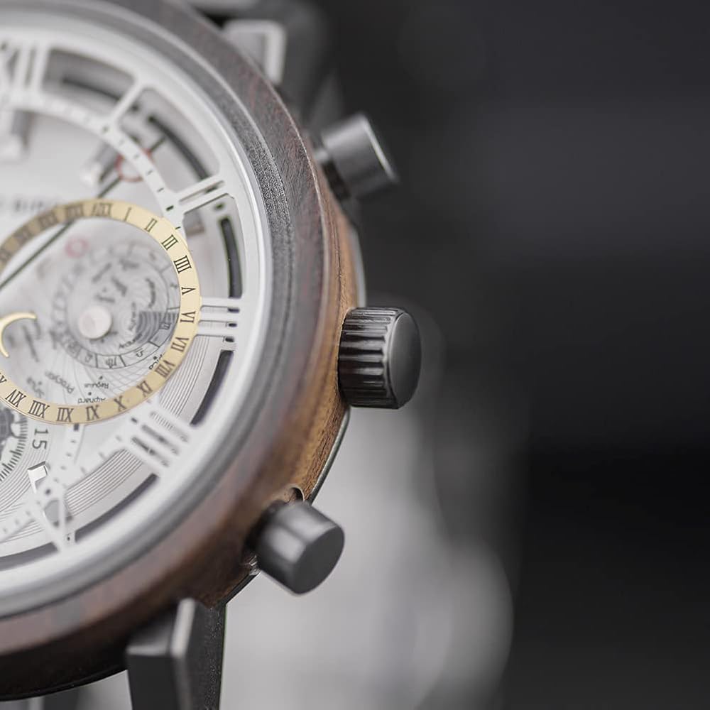 الساعات المنقوشة: كل ساعة من ساعاتنا فريدة من نوعها، تم اختيارها بعناية وصقلها بيد النجار لتمنحك مظهرًا رائعًا يجذب انتباه أصدقائك ومدحهم دائمًا.