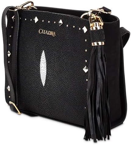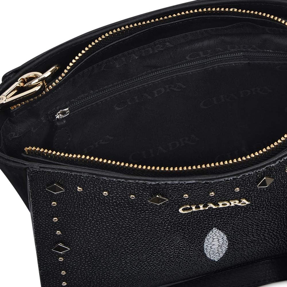 حقيبة كروس نسائية من كوادرا مصنوعة من جلد ستينغراي الأصلي باللون الأسود