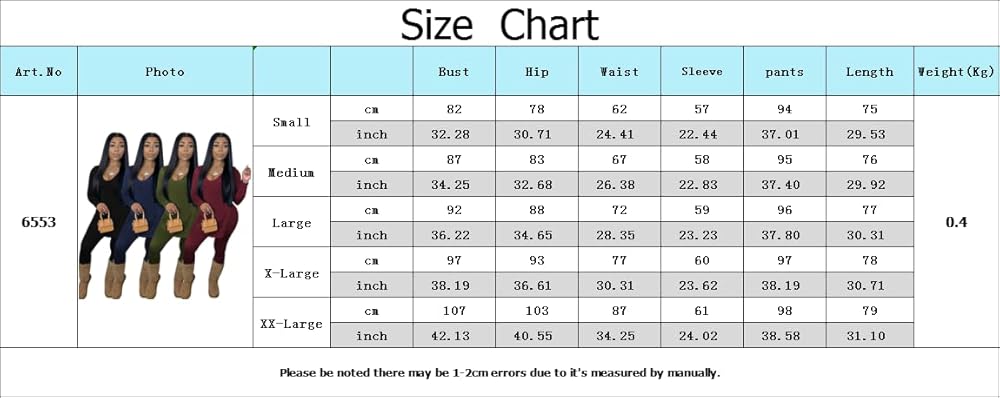 XX-Large: Bust: 107cm/42.13"---Waist: 87cm/34.25"---Hip: 103cm/40.55"---Sleeve:61cm/24.02"---Tops Length: 79cm/31.10"---Pants Length: 98cm/38.58"