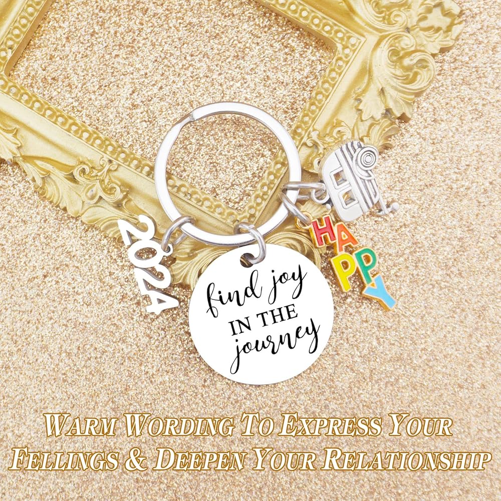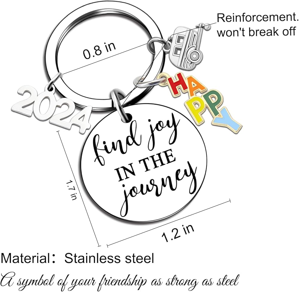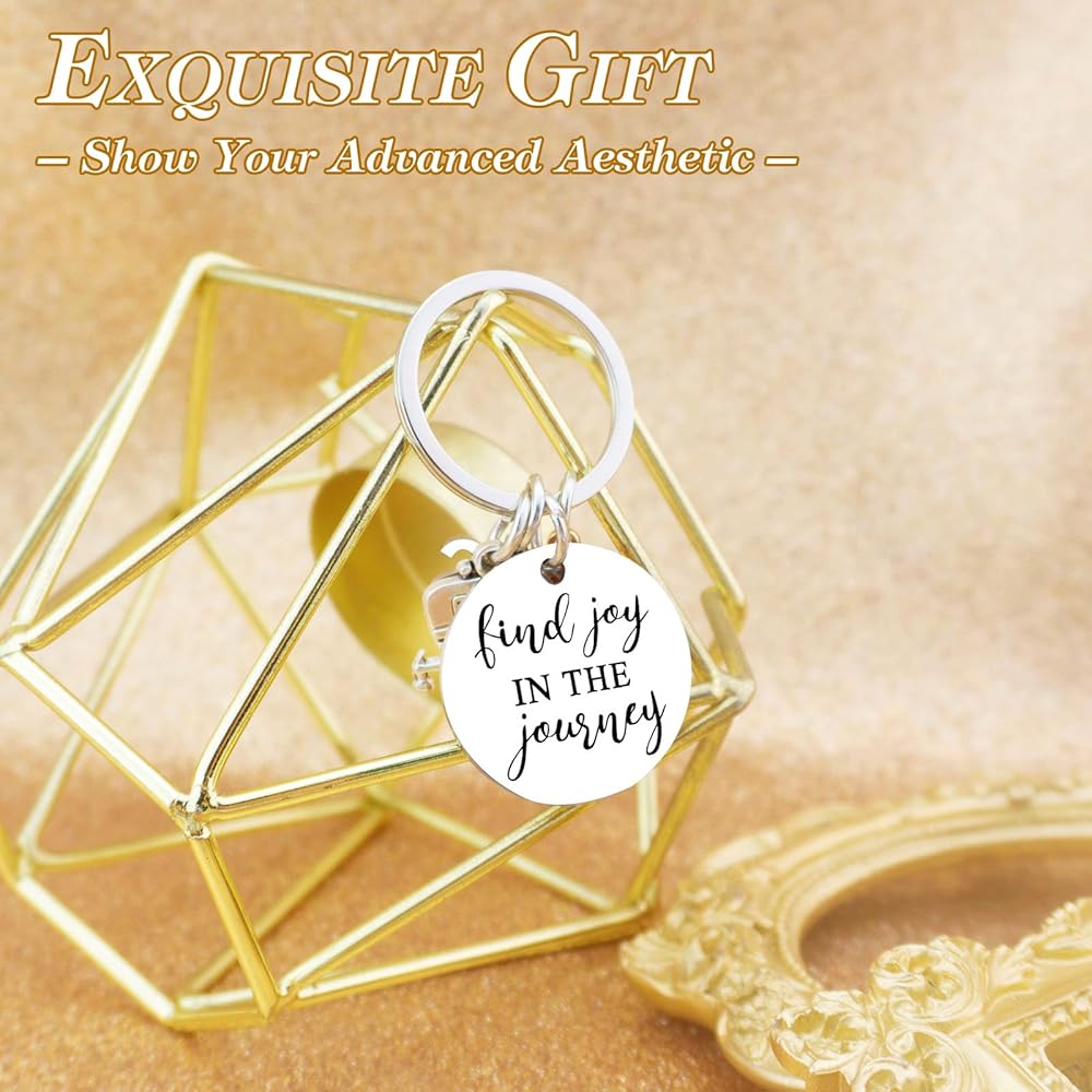 Gifts For Campers Journey Best Friend Gift Happy Keychain For Women Men Presents For Birthday Thanksgiving Keychain For Going Away Find Joy In The Journey Keyrings, Silver, S