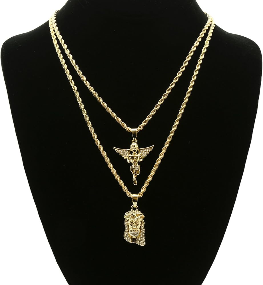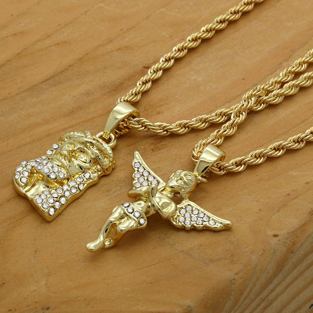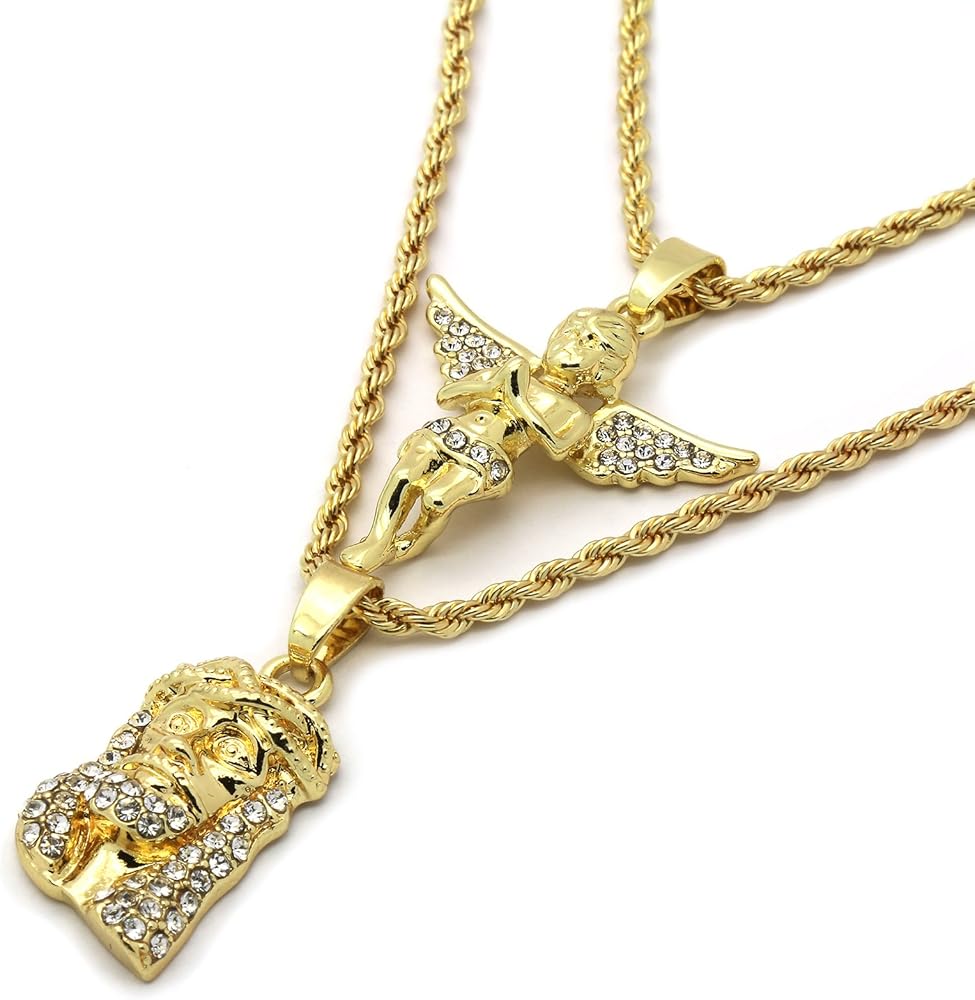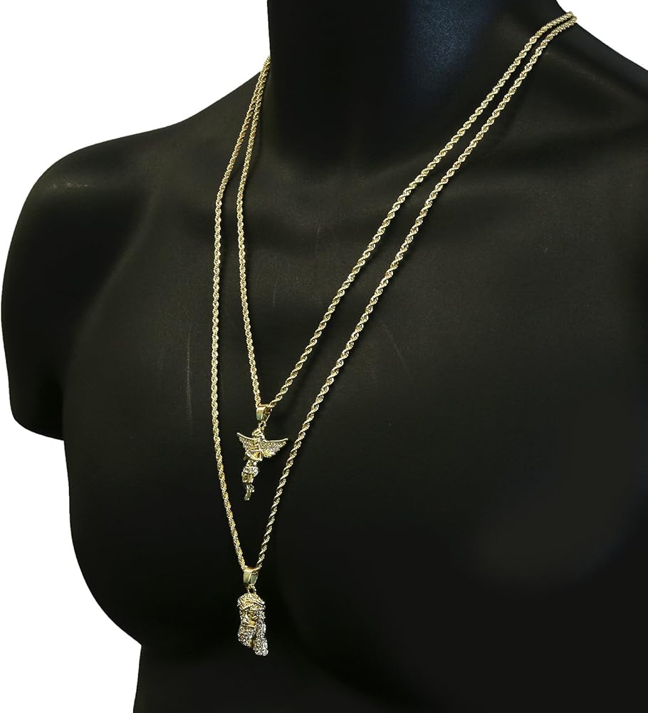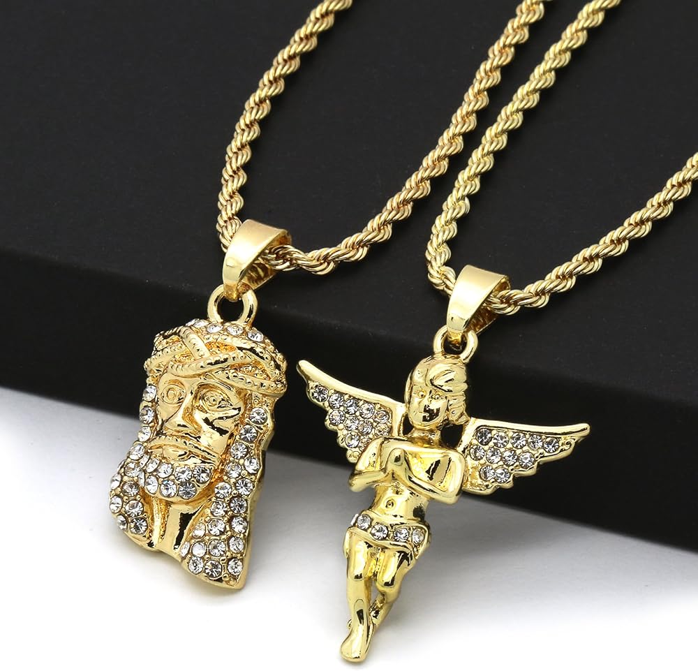 - مجموعة من قطعتين من قلادات المسيح والملاك مع سلاسل حبل