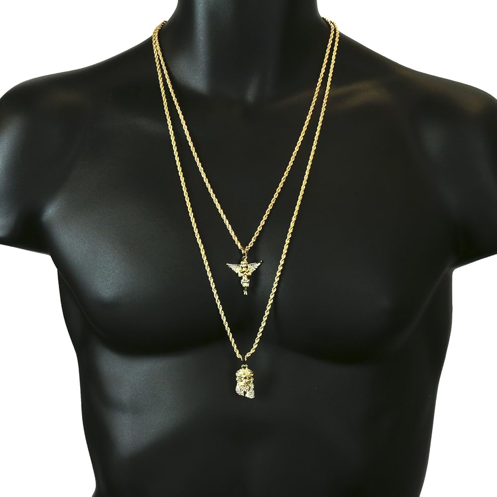 طقم سلاسل حبل للرجال بلون ذهبي من قطعتين بتصميم يسوع وملاك مقاس 2 ملم و30 انش و24 انش 02