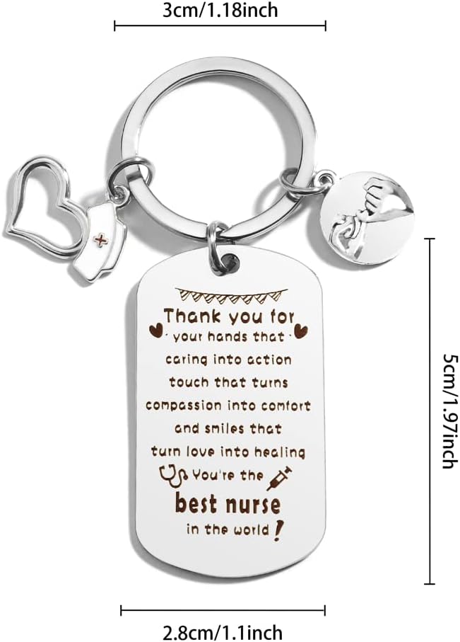 • 🎁【هدايا سلسلة مفاتيح لتقدير الممرضات】سلسلة مفاتيح الممرضة المصنوعة من الفولاذ المقاوم للصدأ هي هدايا عملية وخاصة لجميع أنواع الممرضات، مثل الممرضات المسجلات (RN)، والممرضات العملية المرخصة (LPN)، وطلاب مدارس التمريض، وممرضات السفر، وممارسي التمريض (NP) والممرضات المسجلات في وحدة العناية المركزة (ICU)، والتمريض الطبي الجراحي (MS)، وممرضة غرفة الطوارئ، وما إلى ذلك. التمريض مهنة عظيمة ومقدسة. امنح سلسلة المفاتيح الملهمة هذه لصديقك الذي يعمل كممرض أو طبيب أو طالب طب.