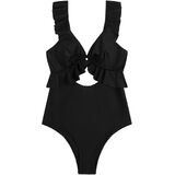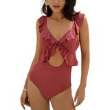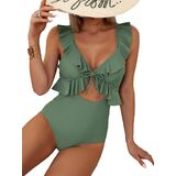 بدلة سباحة نسائية من قطعة واحدة مكشكشة وربطة عنق مقطوعة من Verdusa، ملابس سباحة عالية الخصر