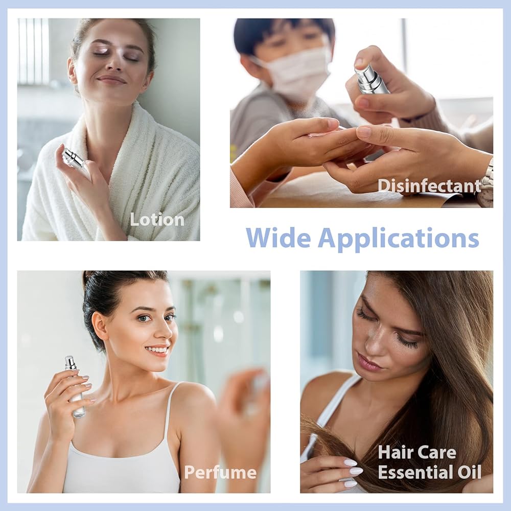 • Suitable Size to Store: each refillable perfume atomizer is 0.53 oz/ 15 ml, the transparent body design makes you easily check the remaining amount of perfume; The perfume spray bottle can be applied to fill perfume, lotion, face and body spray, and other water based liquids