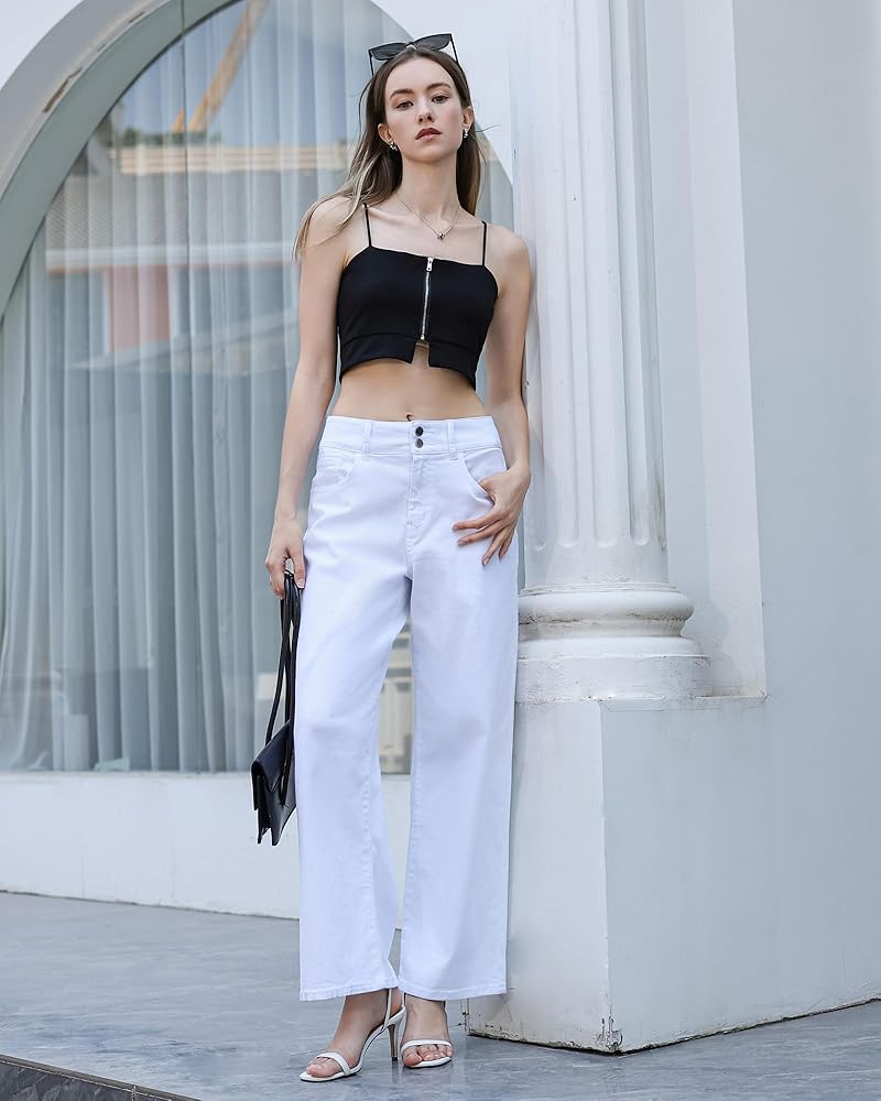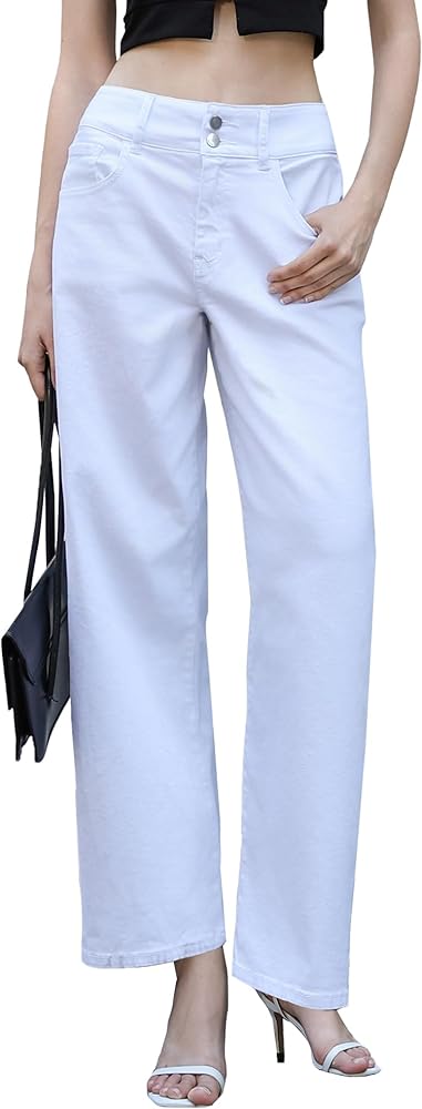 - بنطلون جينز بوي فريند بقصة مستقيمة وبساق واسعة مثالي للارتداء اليومي الكاجوال والمدرسة والعمل والمكتب والشارع والتسوق والسفر والعمل.