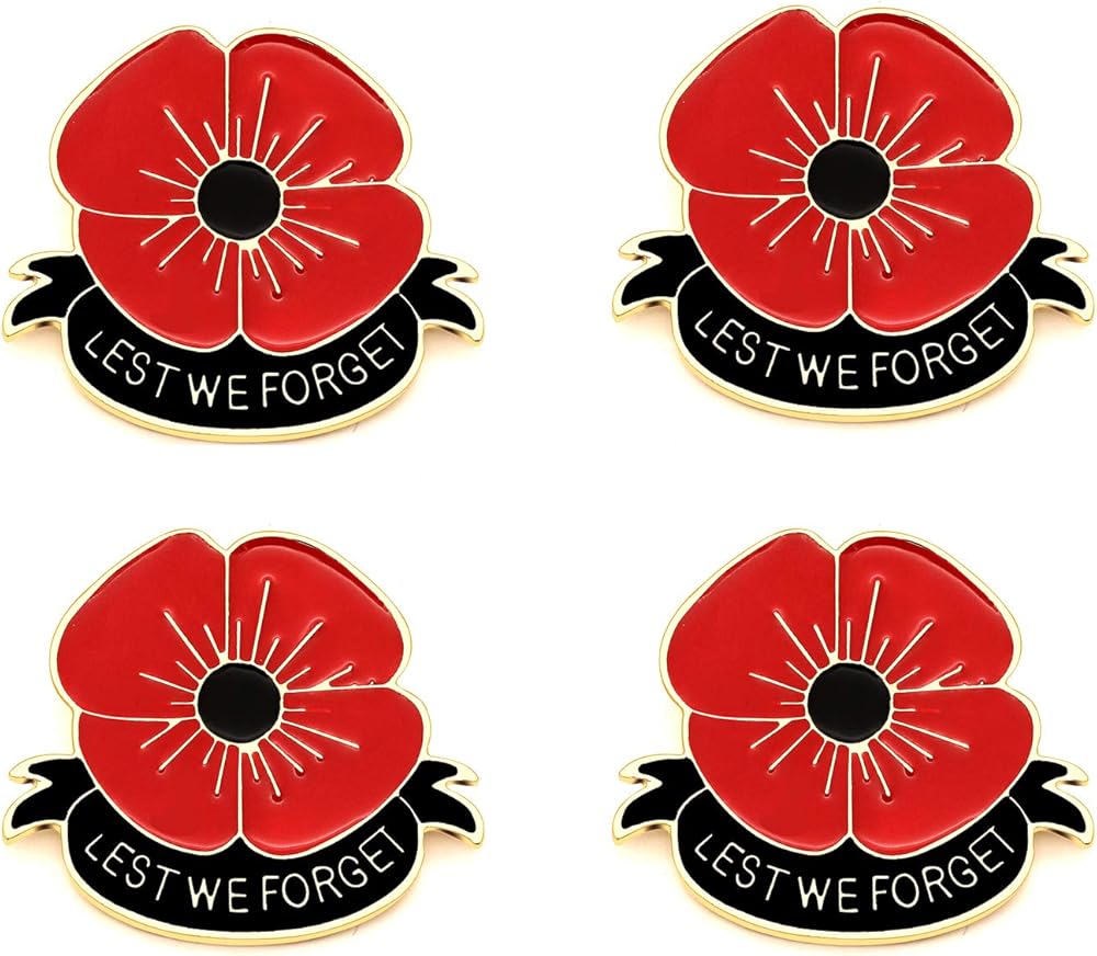 4 قطع من بروش ليست وي فورجيت ريد بوبي على شكل زهرة الخشخاش، مجوهرات ذكرى يوم الذكرى، معدن, معدن, ان ايه