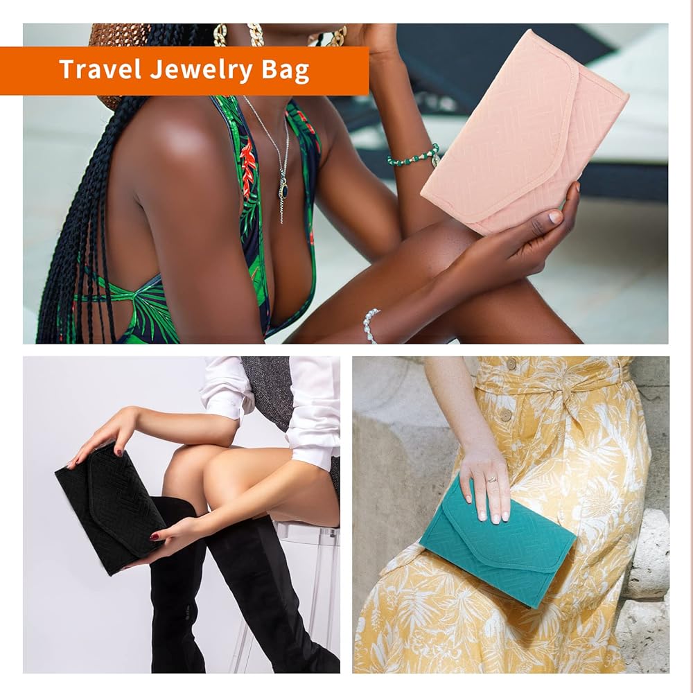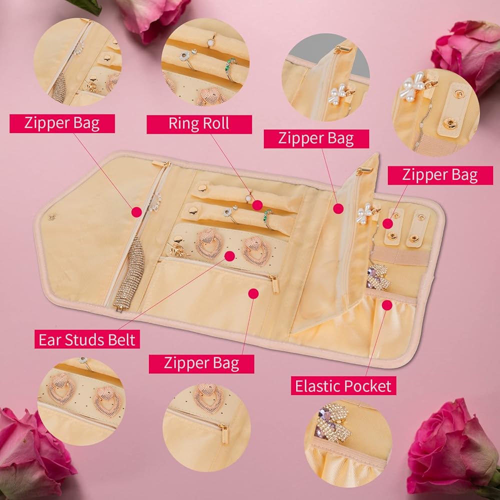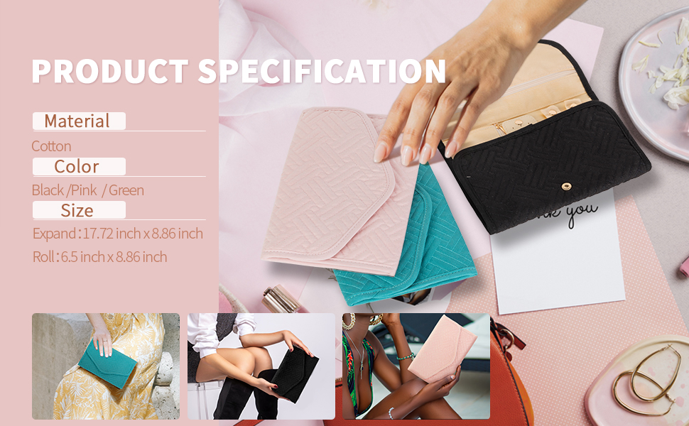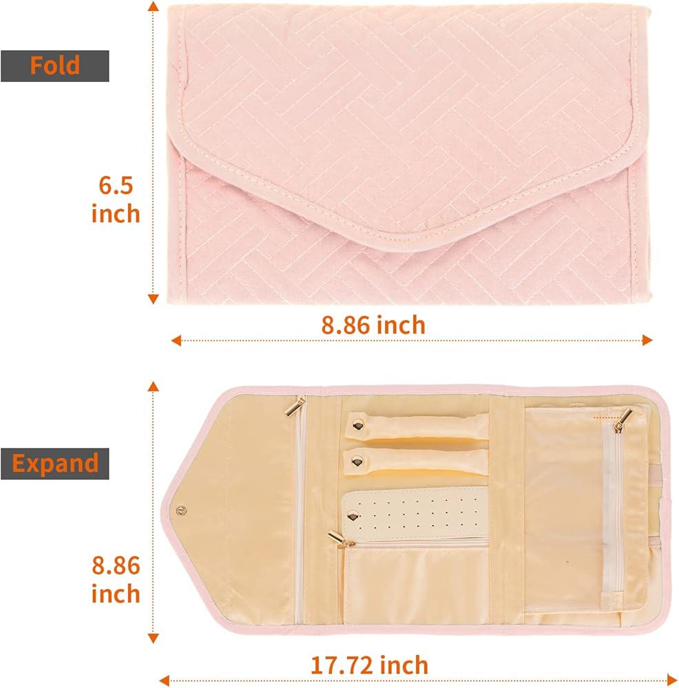 【لفة مجوهرات السفر المحمولة】6.5 بوصة × 8.86 بوصة عند إغلاقها، فقط 0.26 كجم، حقيبة مجوهرات السفر هذه صغيرة وخفيفة الوزن، وسهلة الحمل في حقيبة يدك أو حقيبتك. إنه مناسب للرحلة أو السفر أو رحلة نهاية الأسبوع أو رحلة العمل.