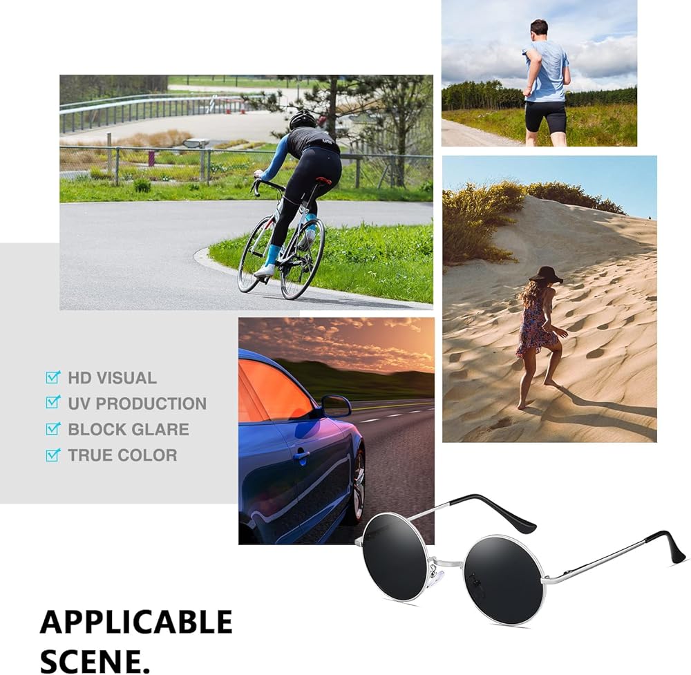 • حماية مستقطبة من الأشعة فوق البنفسجية: تم تصميم هذه النظارات الشمسية المستديرة WMAO hippie لتوفير الحماية المثالية ضد الأشعة فوق البنفسجية الضارة، مما يضمن بقاء عينيك آمنة ومرتاحة حتى تحت أشعة الشمس الساطعة.