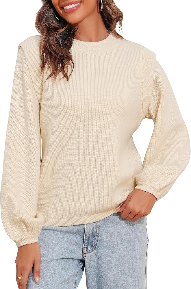 • سترة علوية بأكمام فانوس طويلة، وأكمام فانوس وكتف منظم يمنح هذه القطعة إحساسًا بالأزياء الراقية ويضيف تفاصيل ممتعة، سترات شتوية فريدة للنساء 2023، سترات صوفية أنيقة للنساء، سترة صوفية متماسكة مخططة