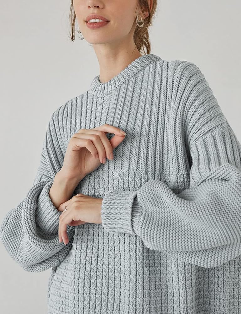 المزايا: سترات بلوفر للسيدات تتميز برقبة دائرية، نمط كبير الحجم، سترات أسقف طويلة الأكمام تضيف بعض الجاذبية، عمليات حياكة متنوعة، تصميم مخيط بشكل مميز، أساور مضلعة، رقبة وحاشية، أكتاف منسدلة، لون سادة سادة