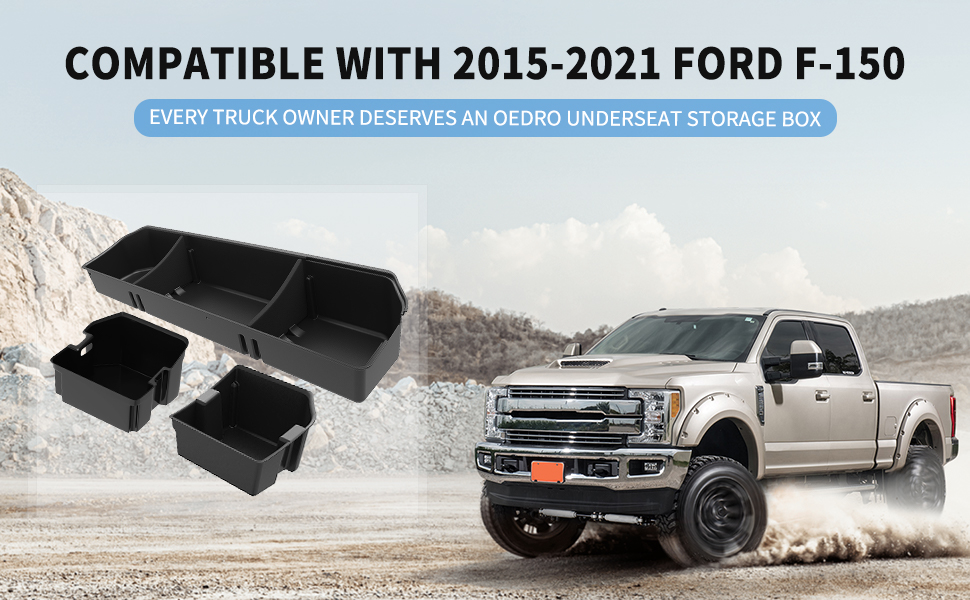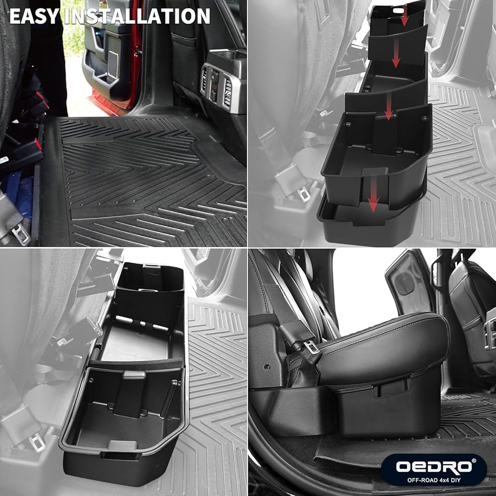 صندوق تخزين مُحسّن أسفل المقعد من oEdRo متوافق مع 2015-2023 Ford F150 SuperCrew Cab & Crew Cab - تصميم فريد من نوعه باللون الأسود 3 في 1 أقصى مساحة تخزين (باستثناء الكابينة الفائقة)