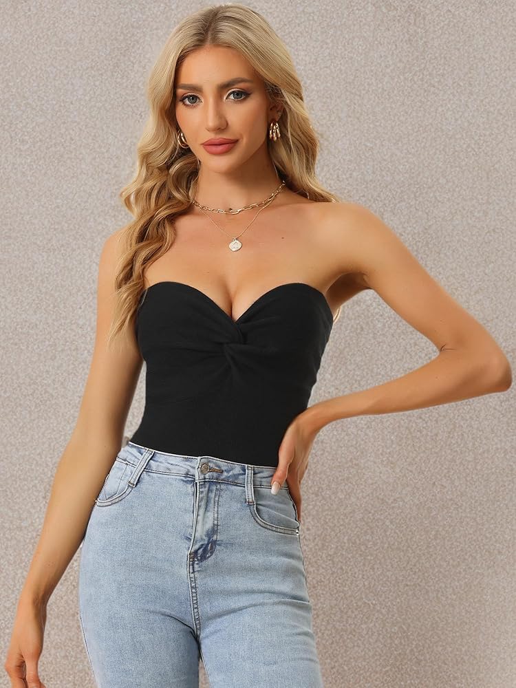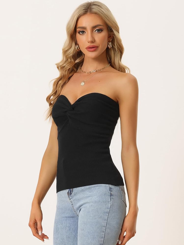 قميص نسائي من Allegra K بدون حمالات مع عقدة ملتوية من الأمام بدون أكتاف بدون أكمام Y2K مشد بدون أكمام