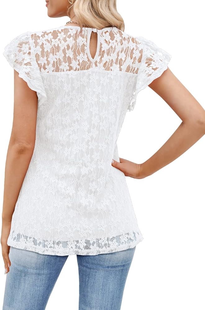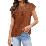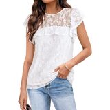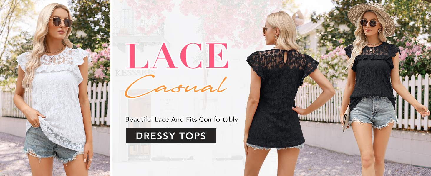 قمم الأكمام كشكش العصرية. يتميز الدانتيل الشبكي شبه الشفاف بملمس زهور أنيق وزخرفة مكشكشة في الأمام لمظهر أنثوي