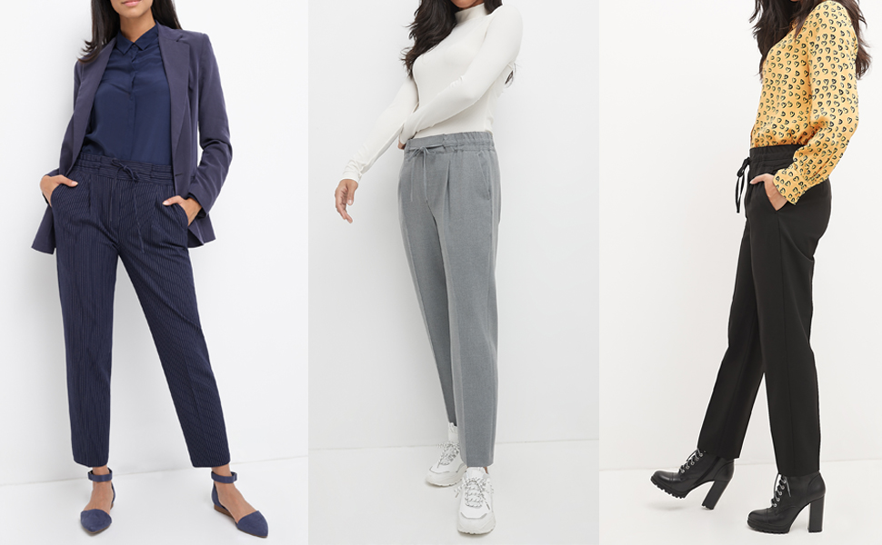 مظهر جذاب: شكل الساق المدبب لهذا البنطال يبدو رائعًا على كل أنواع الجسم. يتميز القماش المنسدل السائل بتمدد قليل، بالإضافة إلى شكل الساق الواسع (ولكن ليس الفضفاض) للحصول على قطعة لا بد من اقتنائها.