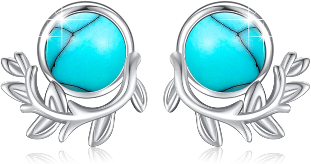 • 【s925 Sterling Silver Hypoallergenic Earrings】The leafs stud is made of S925 sterling silver and Turquoise. Lead-free, nickel-free and hypoallergenic. It can be worn for a long time and is friendly to women girls with allergies ears. Beautiful Silver leaf Earrings are Suitable for Almost All of Sensitive Ears.