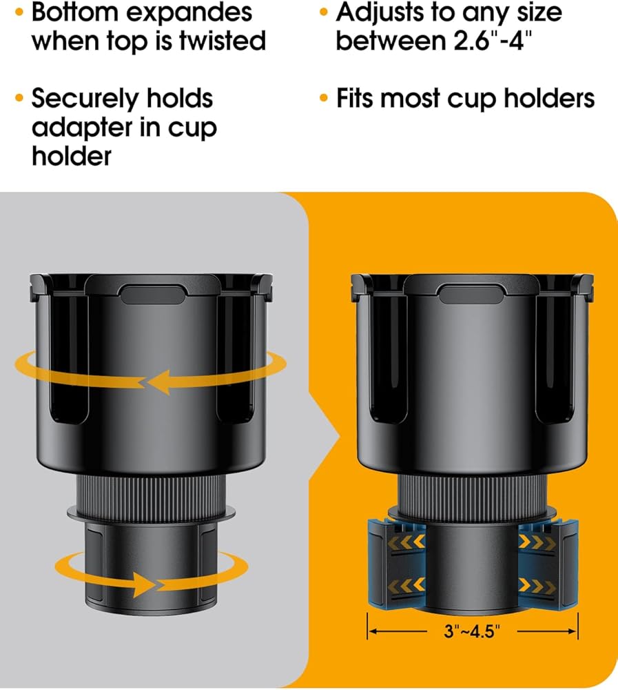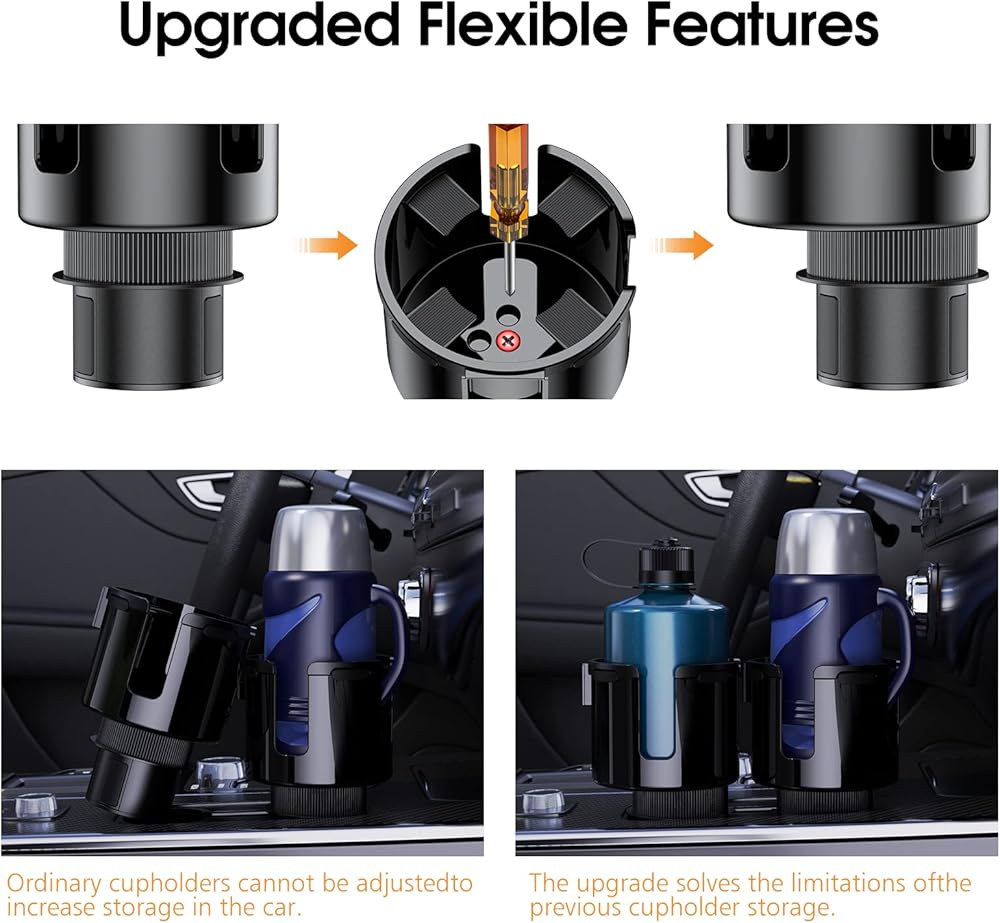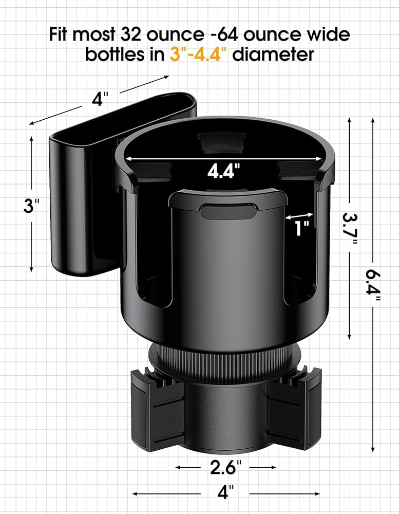 • [حجم مطور]: أحدث موسع لحامل الأكواب يوسع حجم الأكواب ليناسب الأكواب الكبيرة التي يصل قطرها إلى 4.8 انش.