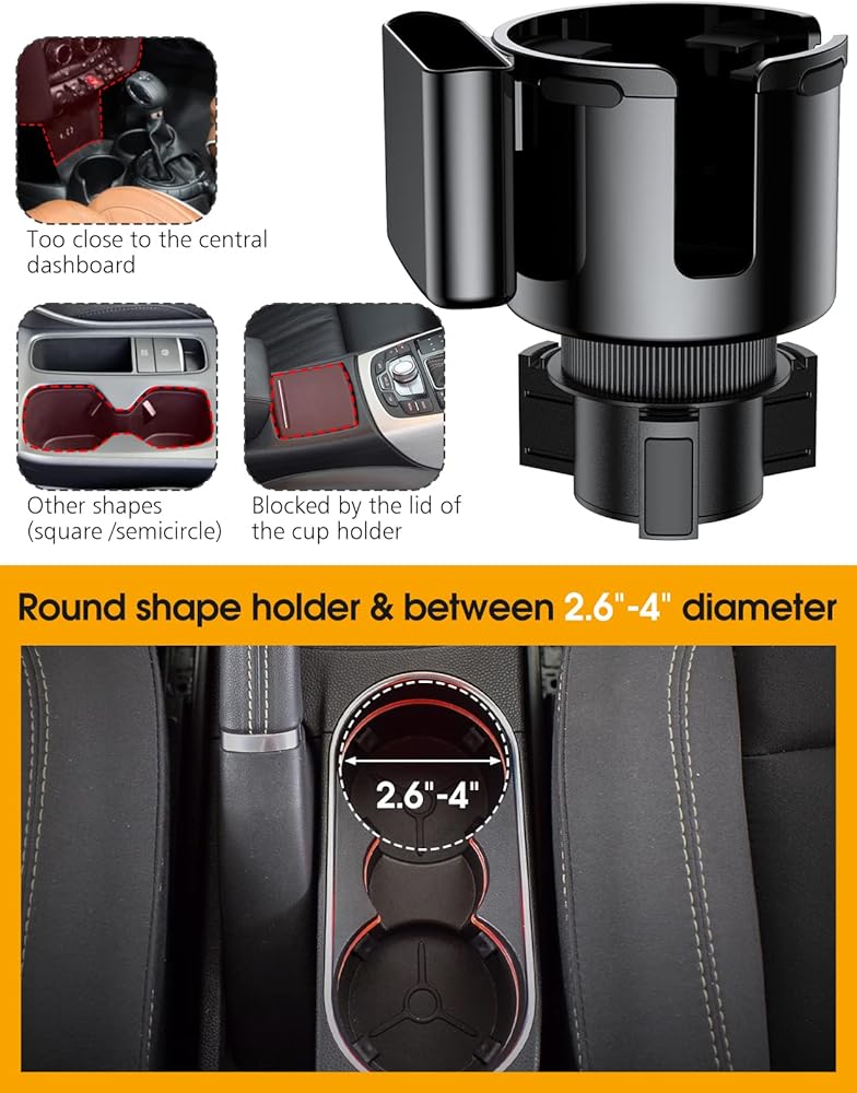 • [توافق واسع] محول حامل أكواب كبير للسيارة يناسب أحجام مختلفة من الزجاجات والأكواب. مثل أكواب القهوة وزجاجات الأطفال والأكواب ذات المقبض وزجاجات المشروبات وما إلى ذلك يمكن أن يعمل بشكل مثالي مع معظم العلامات التجارية الشهيرة من 24-64 اونصة وكوب المشروبات وأكواب القهوة بقطر 3 انش - 4.8 انش