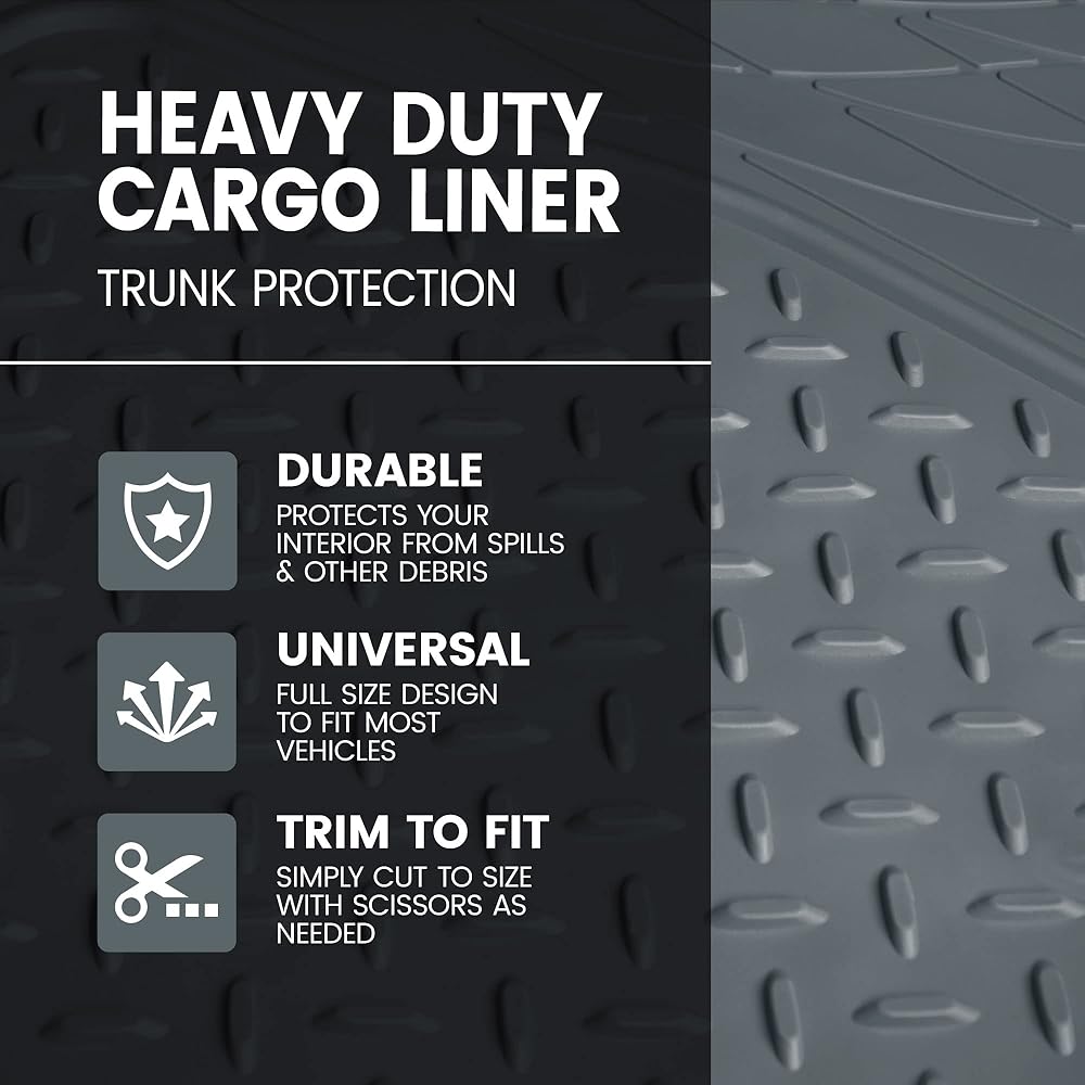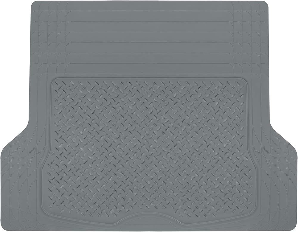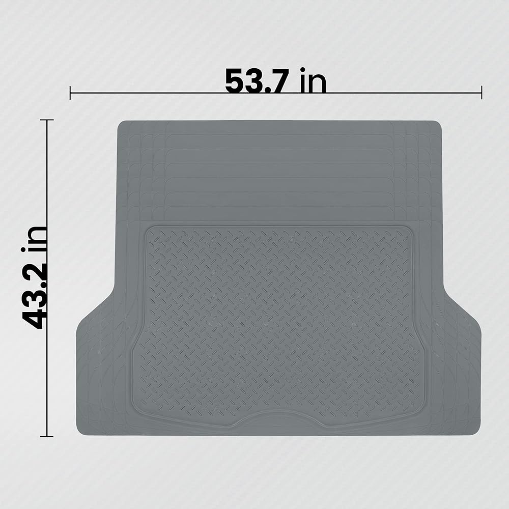 سجادة أرضية بطانة البضائع شديدة التحمل من BDK، حماية لصندوق السيارة في جميع الأحوال الجوية، قابلة للتشذيب لتناسب وحماية متينة من المطاط عالي الدقة لسيارة الدفع الرباعي سيدان، رمادي (MT785GRAMw1)