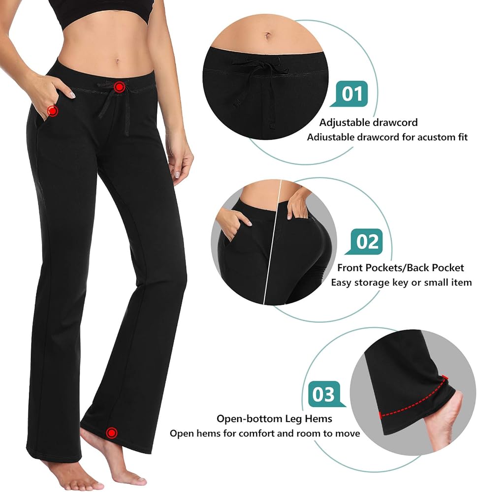 √ سروال يوجا للنساء - حزام خصر مطاطي ورباط قابل للتعديل لملاءمة مخصصة. يمكن ارتداؤه في الخارج أثناء ممارسة التمارين، أو الاسترخاء في المنزل، أو البيجامة، أو الفساتين اليومية، أو كسراويل عمل نسائية.