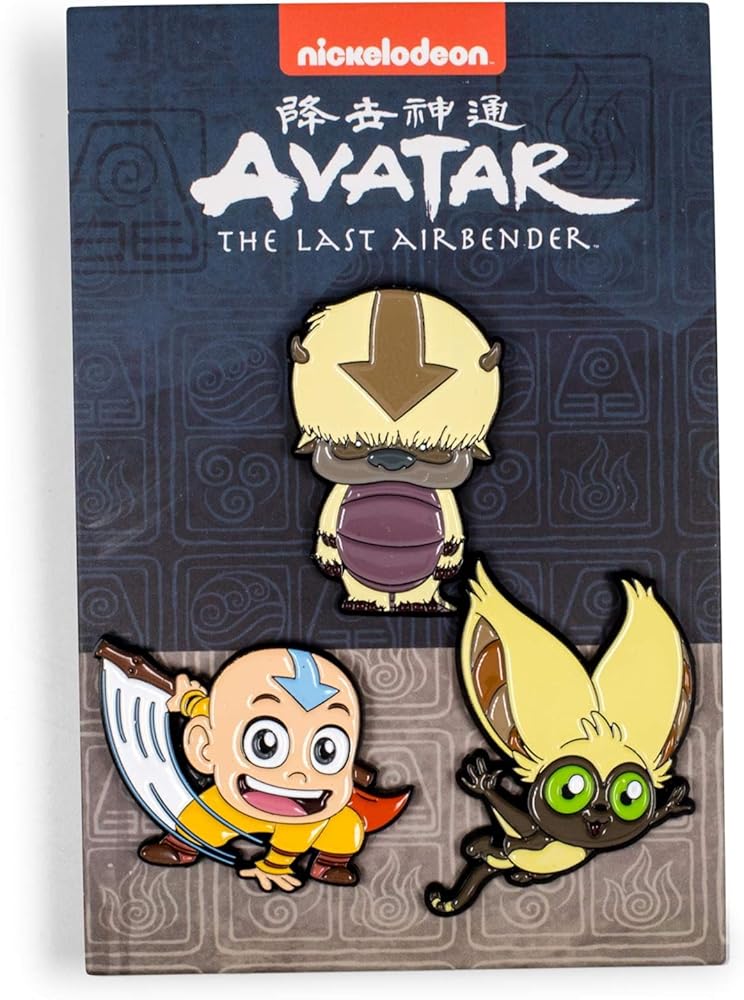 ذا جانج اول هير: أتقن جميع العناصر الأربعة مع دبابيس المينا افاتار: ذا لاست ايربيندر. مستوحاة من ثلاثي اير نوماد الأيقوني، مجموعة الدبابيس الحصرية هذه لا غنى عنها لأي محب لسلسلة نيكلوديون الناجحة.