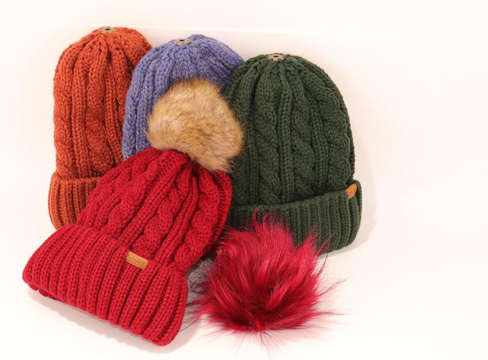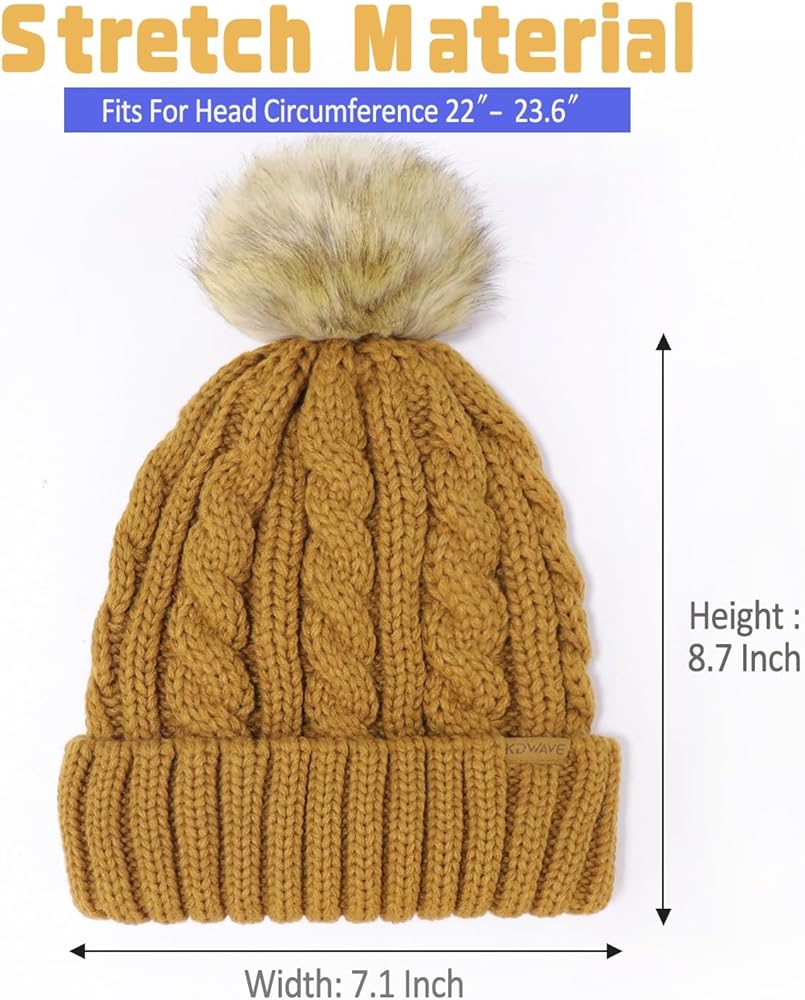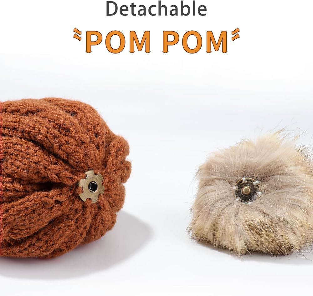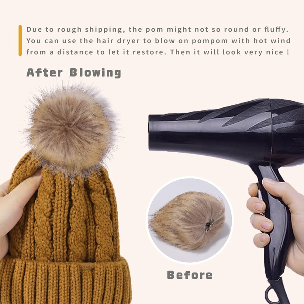 BLOW THE POM WITH HAIRDRYER: Our cute beanie comes with a large faux fur pom pom, much bigger, more cute and stylish. The pom is removable, easy for clean and offer you two different wearing effects. The pom was squashed during transport, please do remember to blow the pom with a hair dryer to maintain its shape.