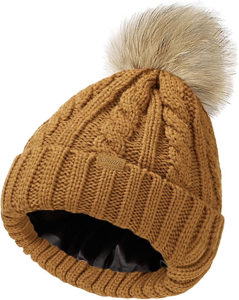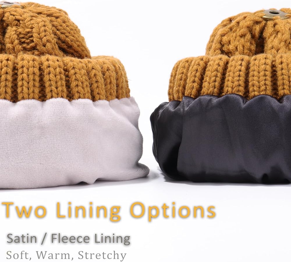 FLEECE OR SATIN LINING: The classic cable knit Beanie offers you two different lining choice, which is fleece lining or satin lining. The fleece lining is more stretchy and satin lining is anti-static. Both lining is durable and thick, will never irritate your skin.
