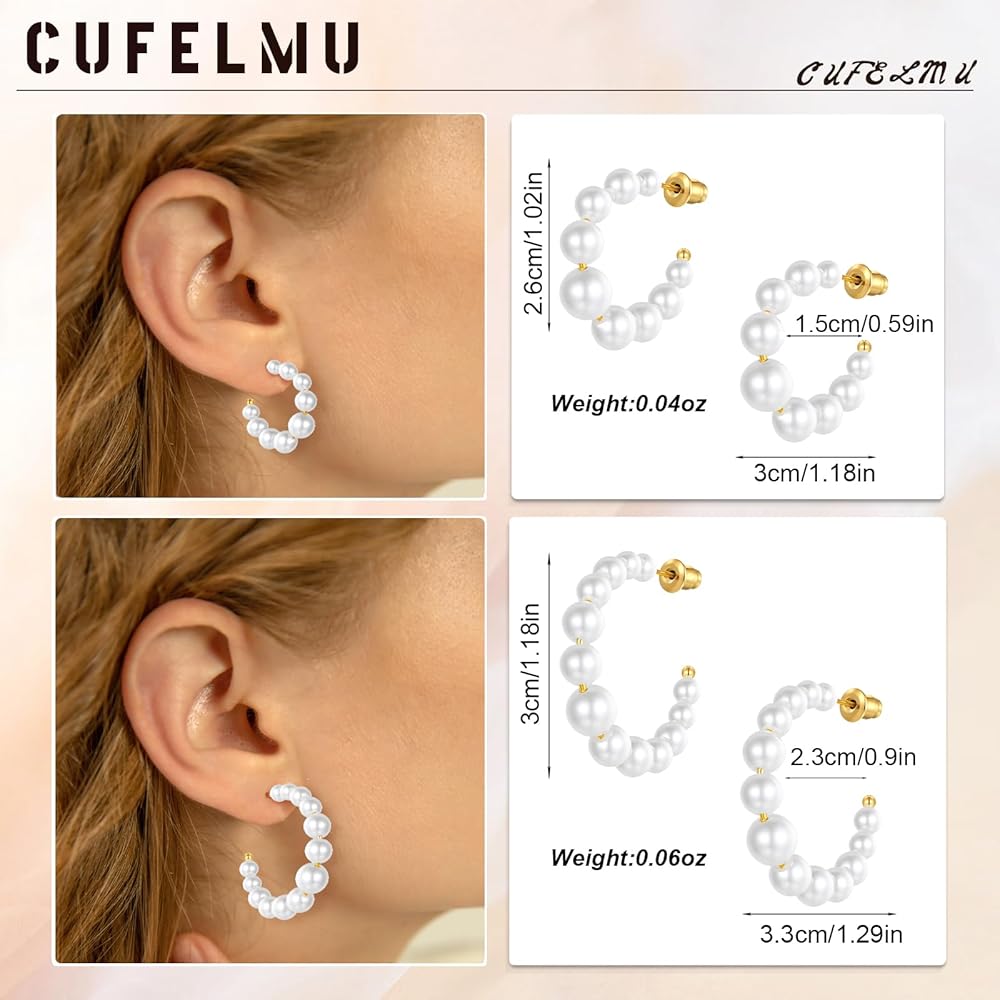 • أقراط اللؤلؤ للنساء: هناك حجمان مختلفان من الأقراط المرصعة باللؤلؤ لتختار من بينها. يبلغ قطر الصغير 0.6 بوصة، بينما يبلغ قطر الكبير 0.9 بوصة. هذه الأقراط اللؤلؤية خفيفة الوزن ومريحة للارتداء اليومي دون التسبب في أي عبء على أذنيك.
