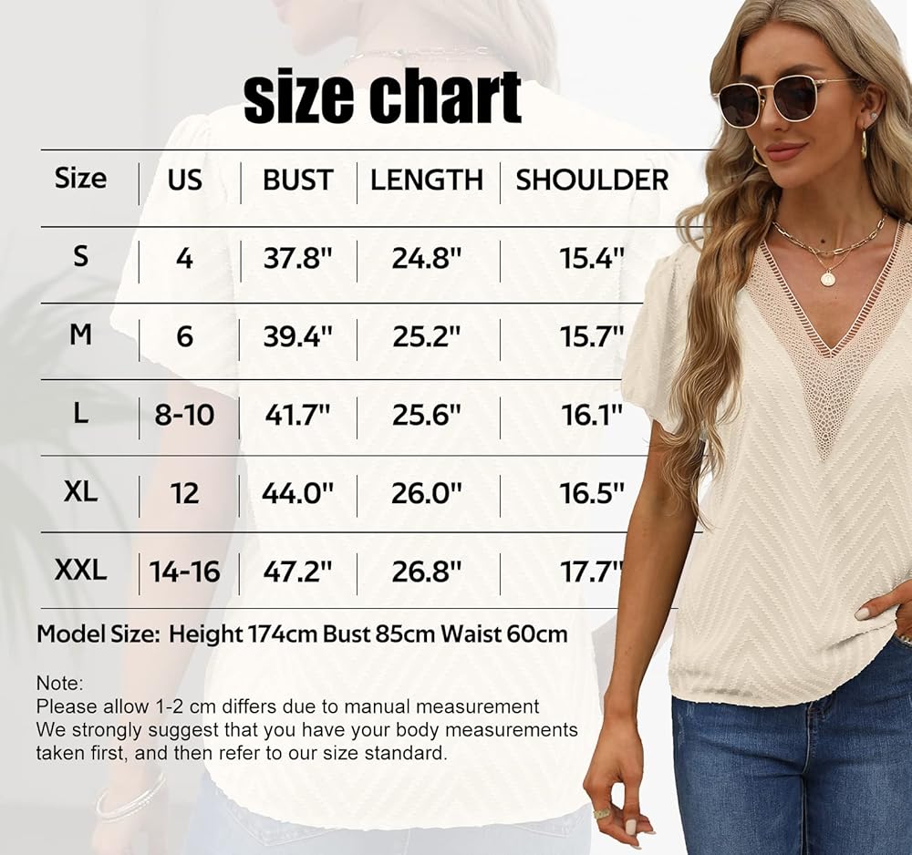 • 💕تصميم فريد: بلوزات صيفية أنيقة للسيدات، رقبة على شكل حرف V مزخرفة بالدانتيل، أكمام قصيرة مكشكشة، مقاس فضفاض، أقمشة منقوشة على شكل حرف W، نسيج ناعم، قمصان تونيك كاجوال للصيف، عصرية وخاصة، تختلف عن الآخرين