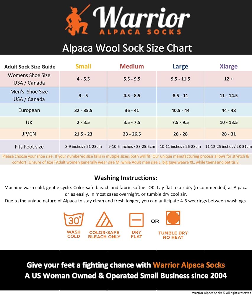 Warrior Alpaca Socks a division of Inca Brands, a woman-owned US business with 20+ years of experience. Alpaca! It's all we do!