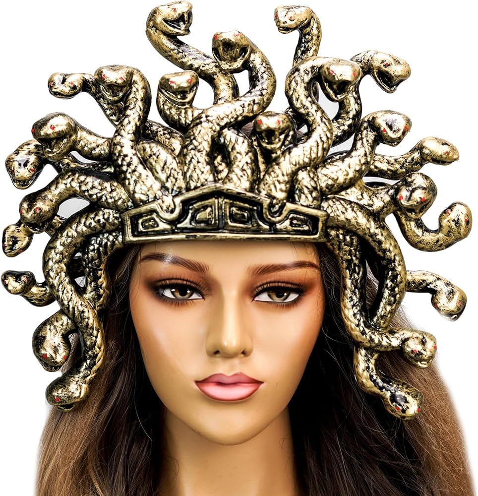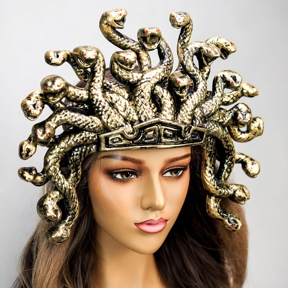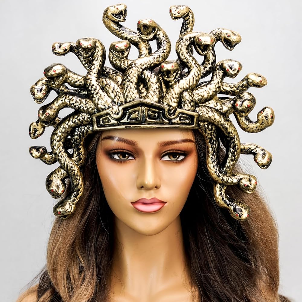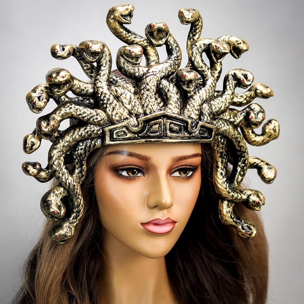 بييوند ماسكرايد بي شريط راس تنكري من ميدوسا، غطاء راس وقبعة تاج للهالوين، اكسسوارات ميدوسا التنكرية