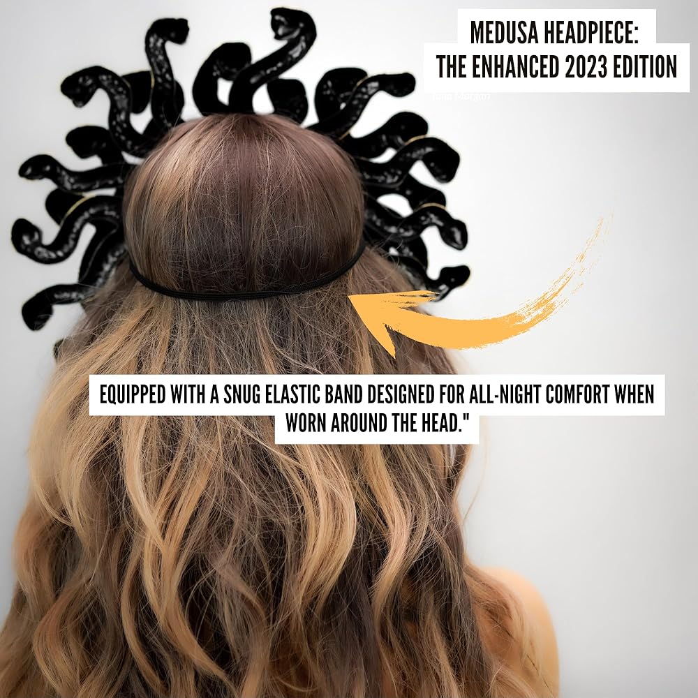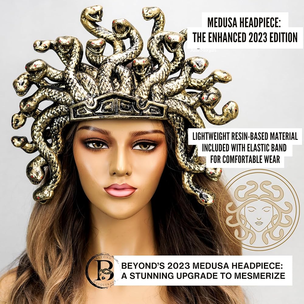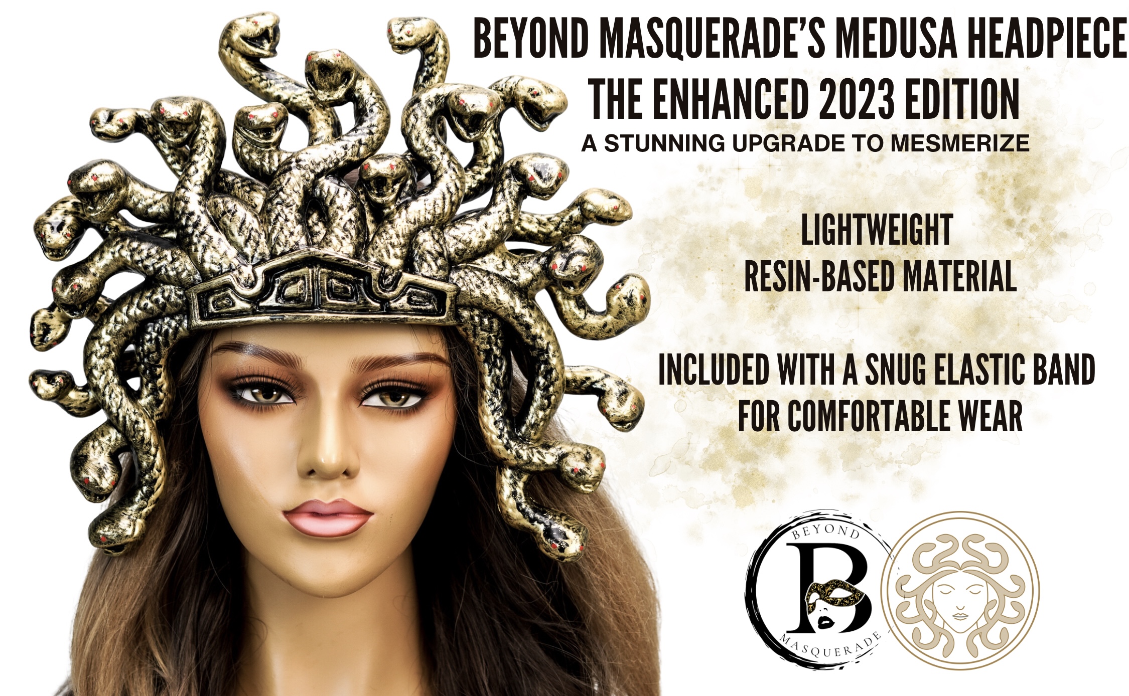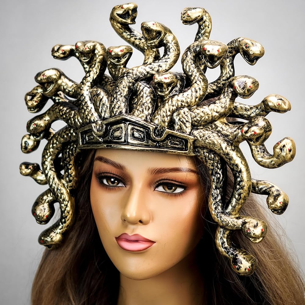 بييوند ماسكرايد بي شريط راس تنكري من ميدوسا، غطاء راس وقبعة تاج للهالوين، اكسسوارات ميدوسا التنكرية