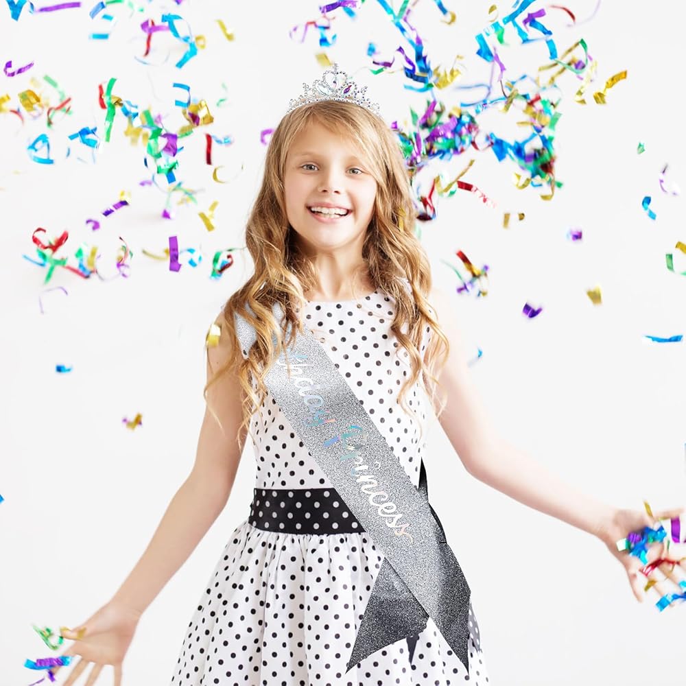 👑 أميرة عيد الميلاد: غطاء رأس الأميرة الأنيق مغطى بأحجار الراين المتلألئة والكلمات الموجودة على الوشاح ملونة، مما يضيف لك إحساسًا بالنبل. يمكن أن يمنحك الوشاح والتاج الخاص بنا حفلة عيد ميلاد خيالية ويجعلك الأميرة الوحيدة عيد ميلادك.