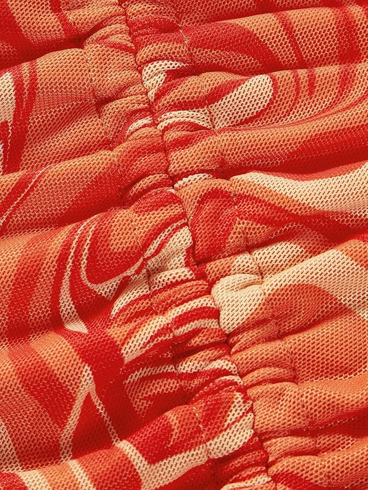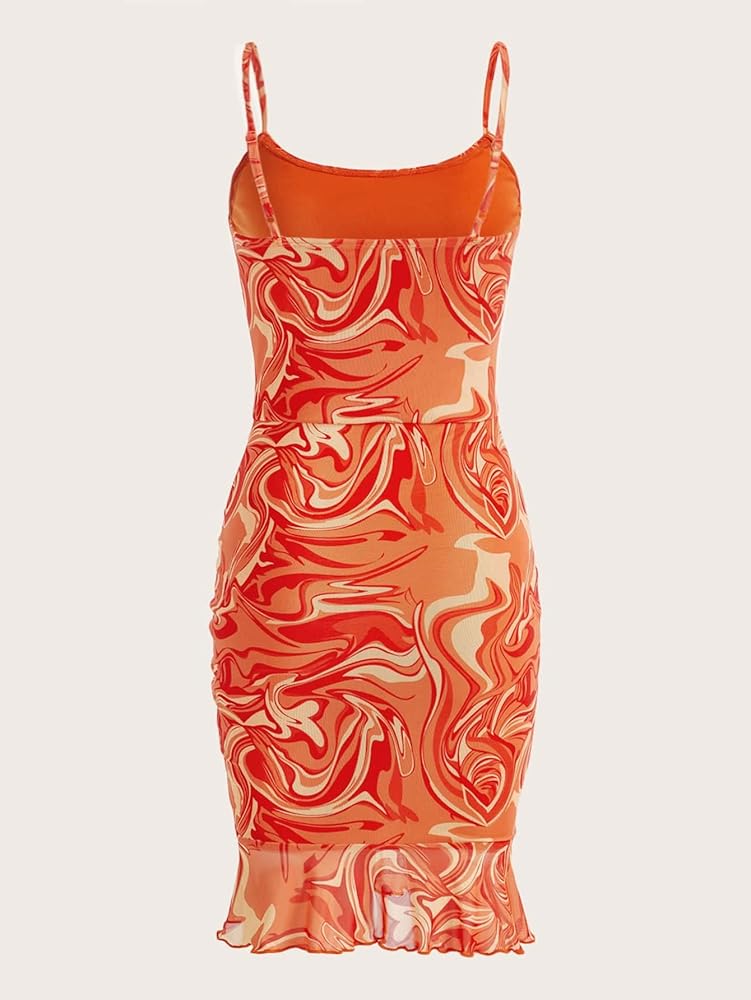 - السمات: طباعة رخامية، رباط، مكشكش، ضيق، حاشية مكشكشة، حزام سباغيتي، مقاس نحيف، مطاط عالي، فستان قلم رصاص