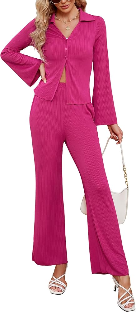قميص Plisse بأكمام جرس: كتف مستقيم، وأكمام طويلة على شكل جرس، ومطاط قليلاً، وبليسي ولون ثابت، وياقة طية صدر السترة، وأزرار أمامية. يتيح لك التصميم الكلاسيكي والمريح ارتدائه بشكل مريح مع إظهار مزاجك غير الرسمي والطبيعي والأنيق.