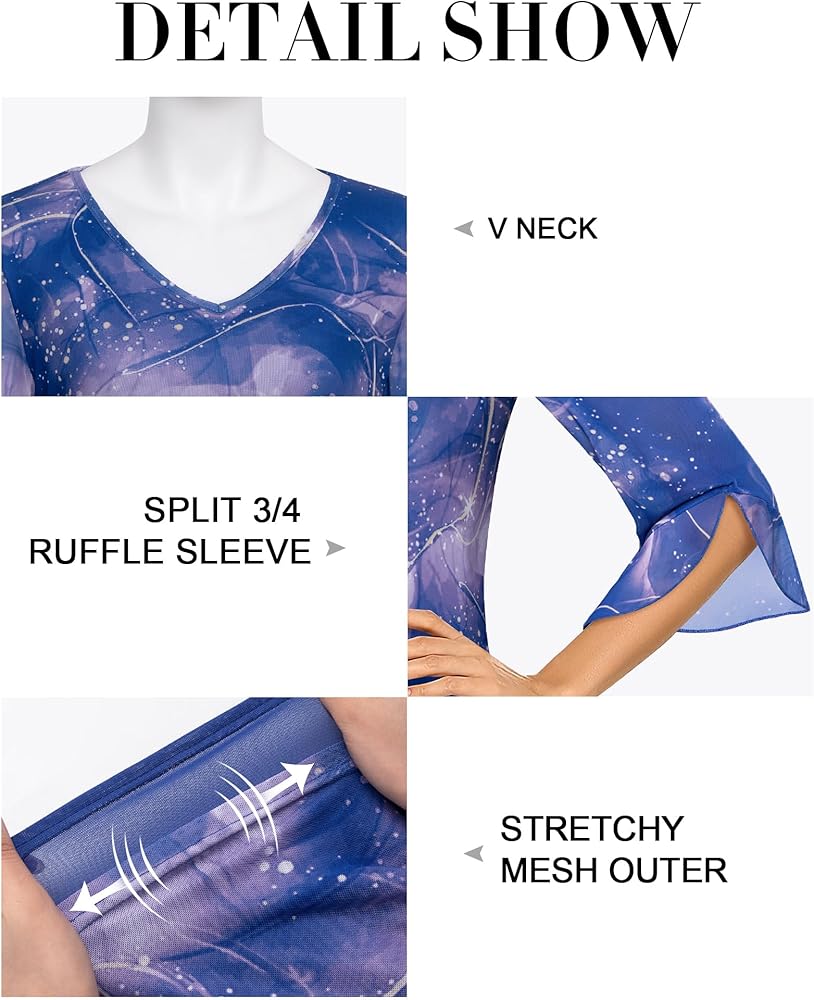 • 【قمصان مكشكشة بأكمام 3/4】تضفي الأكمام المنفصلة شبه الشفافة الرقيقة والمميزة لمسة من الأناقة مع توفير تغطية للذراعين العلويين دون إعاقة الحركة. سوف تشعر بالراحة والحركة غير المقيدة
