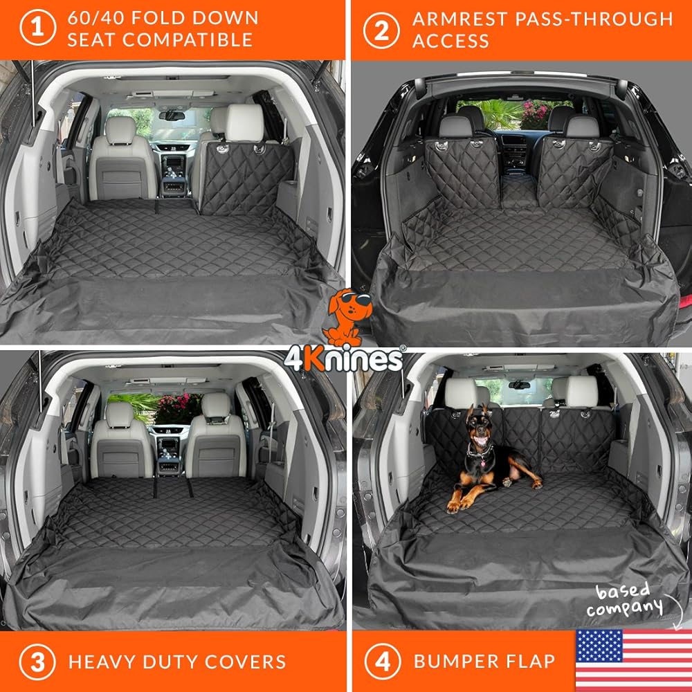 طبقة K9-SHIELD مقاومة للماء وغير قابلة للانزلاق - طبقة صفائح خاصة غير مبطنة مقاومة للماء تجعل بطانة الحمولة مقاومة للماء تمامًا بينما يحافظ الجزء الخلفي غير القابل للانزلاق على الغطاء من التحرك (الدرزات والسحابات ليست مقاومة للماء). K9-SHIELD عبارة عن صفائح نسيجية خاصة تم تطويرها بواسطة 4Knines لتوفير أقصى قدر من الحماية لسيارتك.