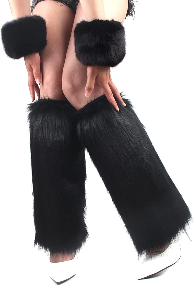 Size:the long faux fur leg warmer cuffs height: 40cm/ 15.75 inches, circumference: 20 to 40 cm/ 7.87 to 16 inches, the faux fur wrist cuffs height: 9 cm/ 3.54 inches, circumference: 17 to 30 cm/ 6.7 to 11.8 inches, have adjustable rubber on top, suitable for most people.