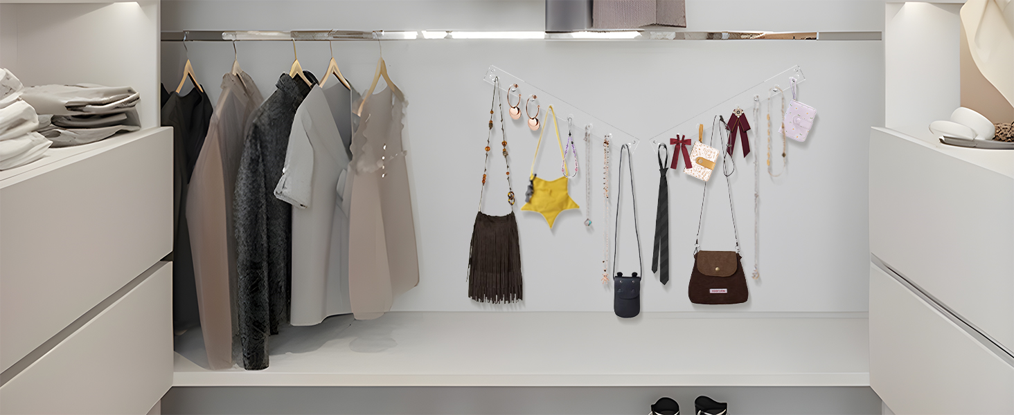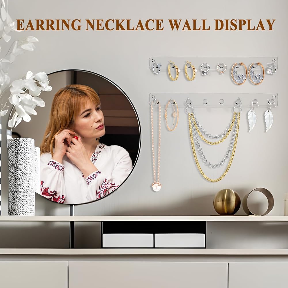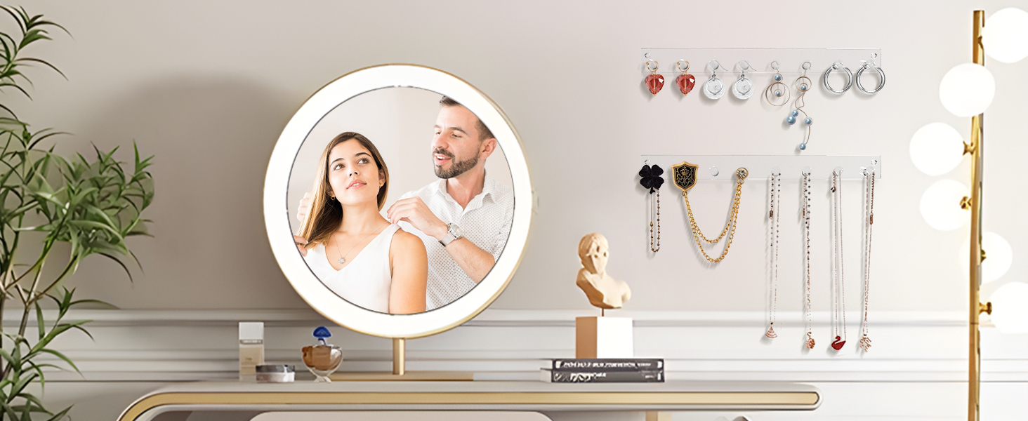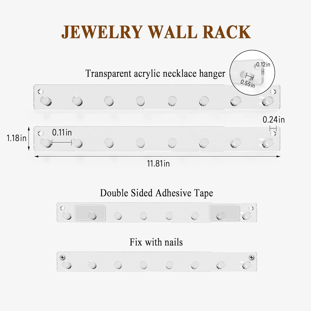 1. احفظي بعيدًا عن الفوضى - لا مزيد من القلق بشأن القلادة الفوضوية، استخدم شماعة المجوهرات الجدارية الخاصة بنا لعرض مجموعة متنوعة من السلاسل الطويلة والسلسلة القصيرة والأساور، حافظ على طاولة الزينة مرتبة واختر ما تريده بسرعة.