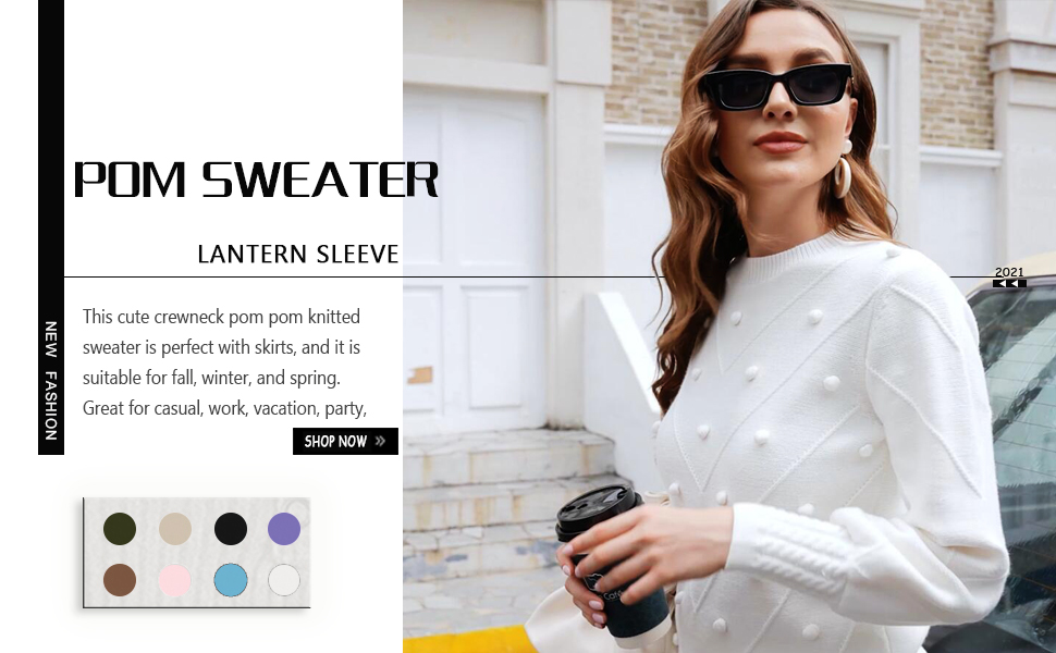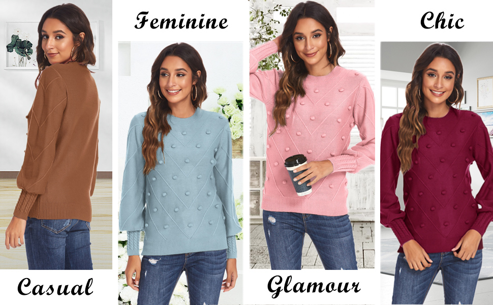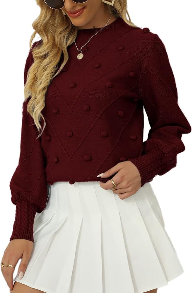 المزايا: بلوفر برقبة دائرية وأكمام منتفخة. سترة بوم بوم لطيفة، نمط غزل شيفرون عصري وتفاصيل أساور أنيقة، عصرية وأنيقة.