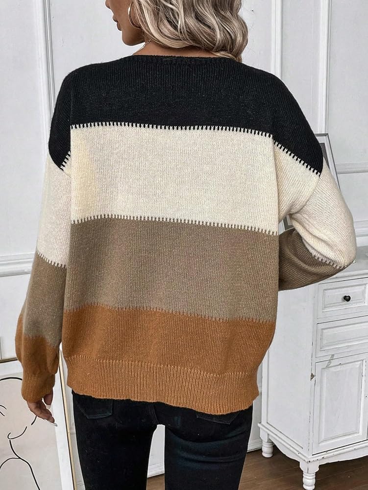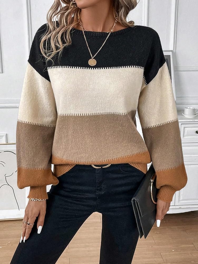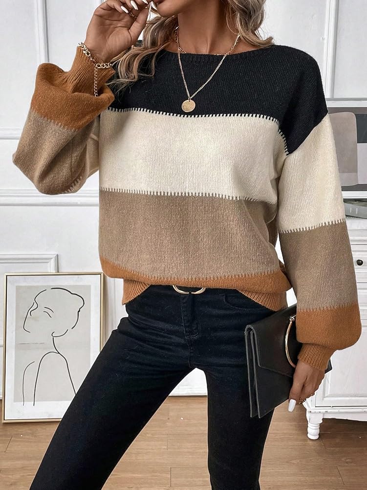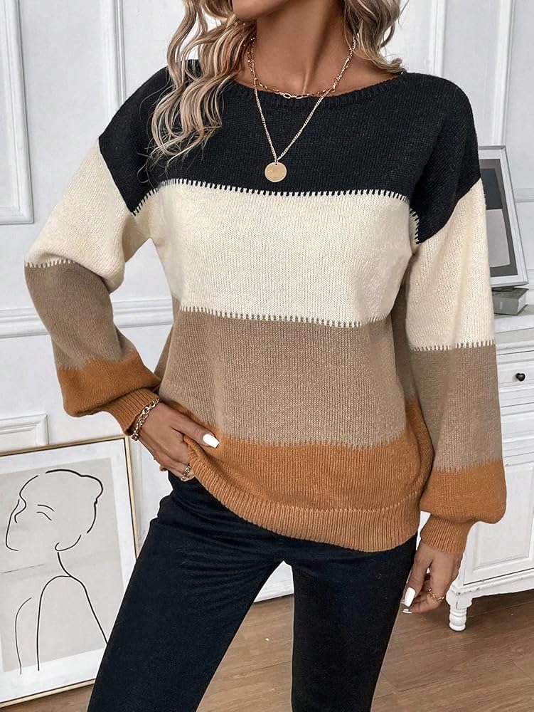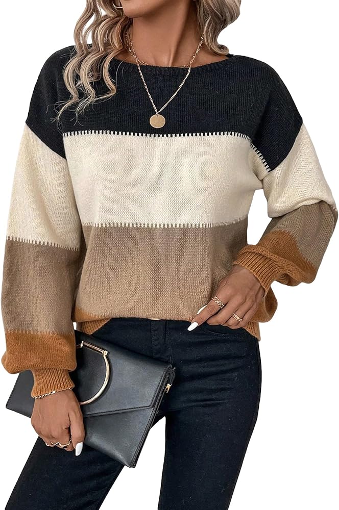 • Feature: Round neck, long sleeve, drop shoulder, colorblock, womens sweaters, pullovers, fashionable
