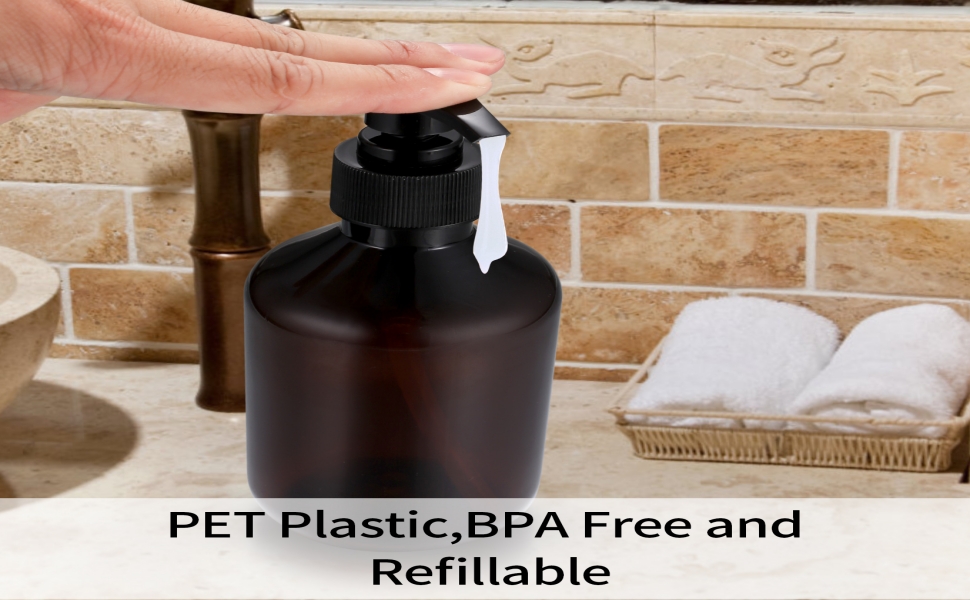 - زجاجات المضخة القابلة لإعادة الملء مصنوعة من مادة بي اي تي الممتازة، وهي غير سامة ومتينة.