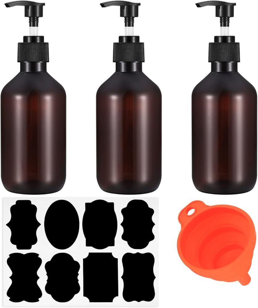 محتويات العبوة: ستحصل على 3 قطع من موزع المضخة بسعة 300 مل، وقلم، وقمع قابل للطي، وورقة واحدة من ملصقات الملصقات القابلة للمسح، كافية للاستخدام اليومي.